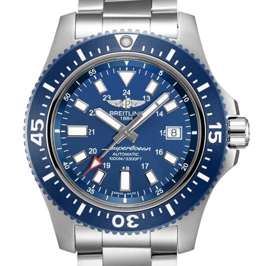 A Breitling Superocean 44 Special reference Y1739316/C959 represents one of the more robust and purpose-built dive watches in Breitling’s modern catalogue. With its 44mm stainless steel case, 1000m water resistance and COSC-certified Breitling Calibre 17 automatic movement, it sits firmly within the professional tool-watch category rather than the fashion-driven sports segment. The blue dial and matching blue bezel configuration is among the strongest and most commercially desirable colourways, helping sustain consistent secondary-market interest.