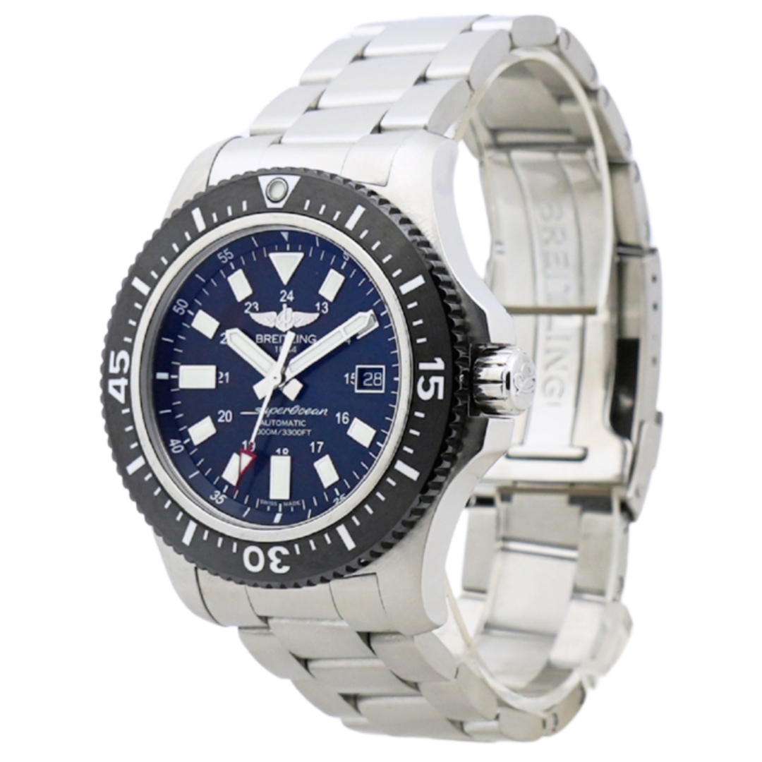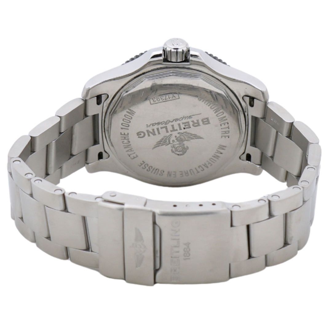 Inside the watch is a Breitling automatic chronometer-certified movement, ensuring dependable accuracy and consistent performance. Designed for serious underwater use, the Superocean 44 Special offers an impressive water resistance of 1,000 metres (3,300 feet). The unidirectional rotating bezel allows divers to track elapsed time safely, while the solid stainless steel case construction reinforces the watch’s durability and tool-watch character.