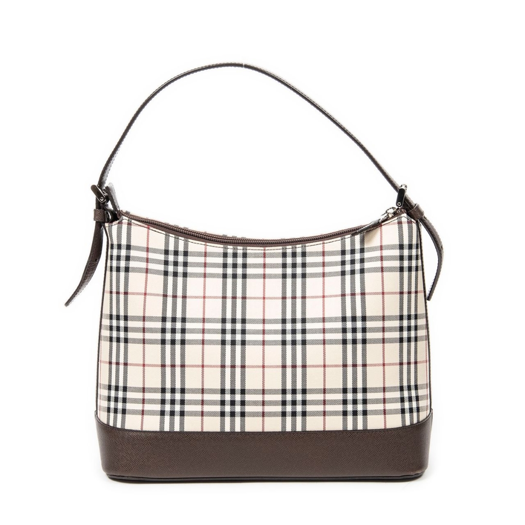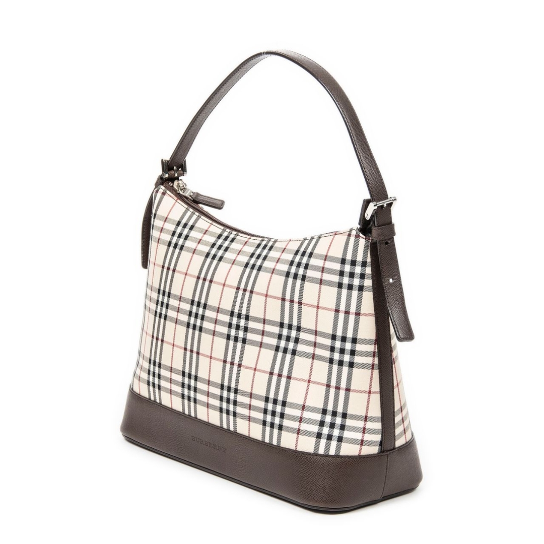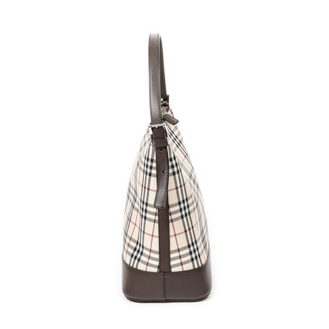 A vintage beige and brown canvas Burberry Zip Hobo bag with a certificate of authenticity, Approximately 22cm height, 28cm width.