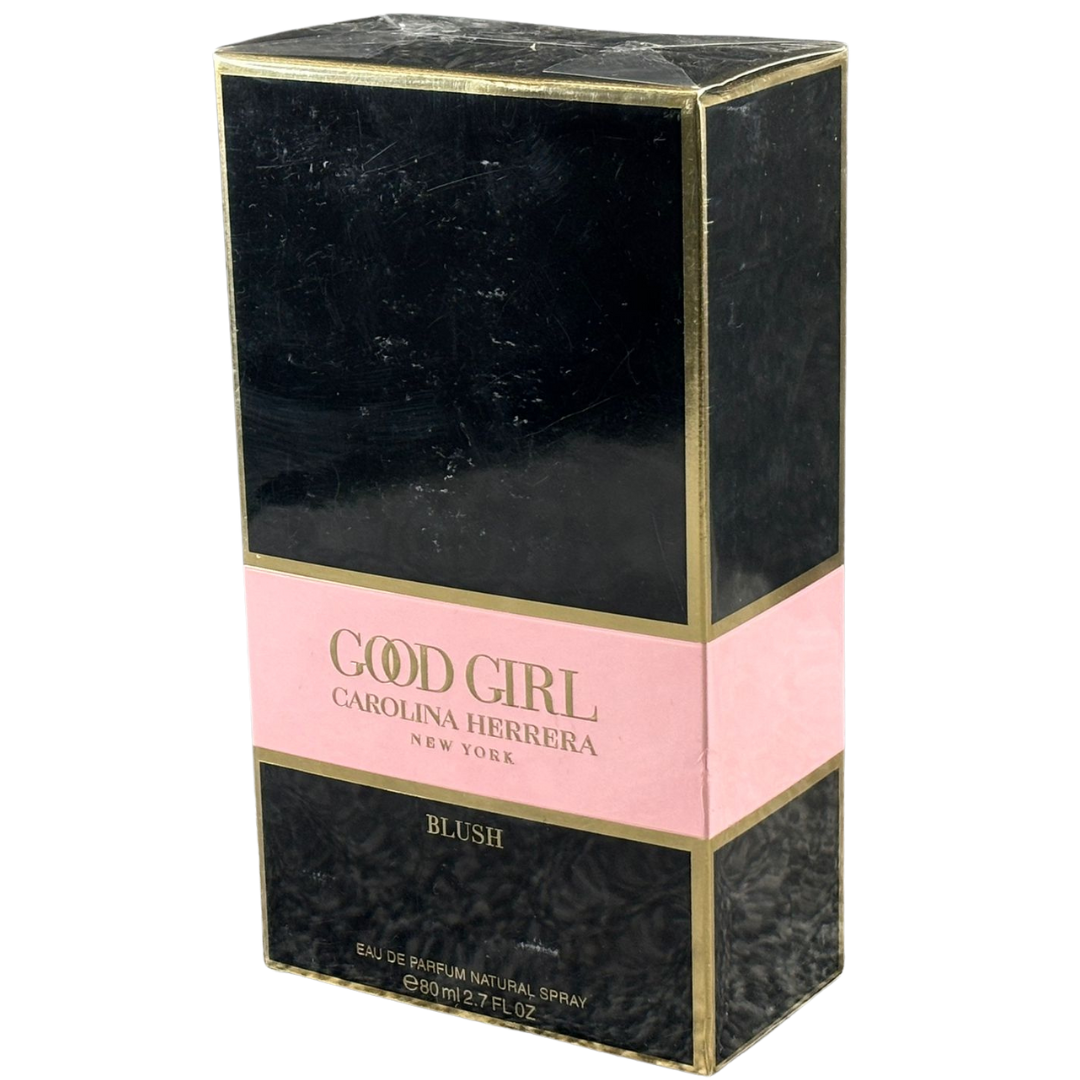A 80ml bottle of Carolina Herrera Good Girl Blush Eau De Parfum, presented in its original presentation box and offering a softer, more romantic interpretation of the iconic Good Girl fragrance. This elegant edition balances modern femininity with refined confidence, delivering a lighter and more luminous expression of the celebrated line.