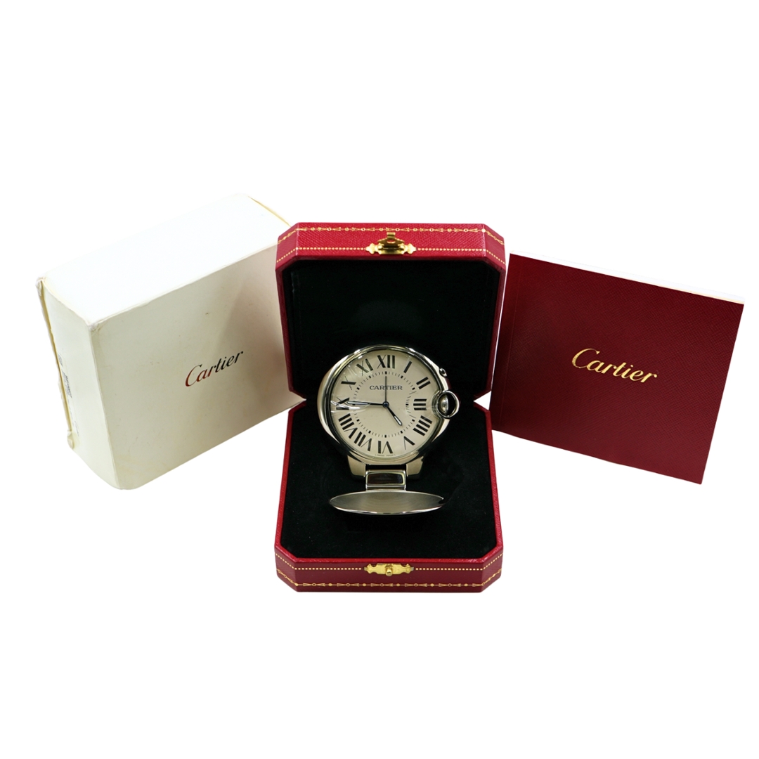 Presented in its signature red Cartier box with the original outer packaging and booklet, this desk clock embodies sophistication in every detail. Its compact form makes it a striking addition to any office, study, or home interior. A true collector’s piece that seamlessly blends practicality with Parisian prestige, the Cartier Ballon Bleu Desk Clock stands as a refined statement of enduring elegance and impeccable taste.