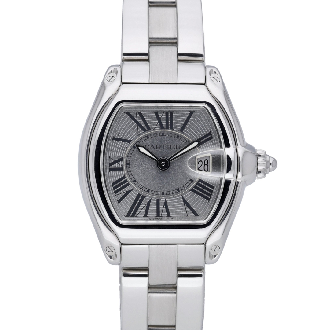 A Cartier Roadster watch, crafted in stainless steel and paired with a striking silver dial that highlights its distinctive tonneau-shaped case. Model number W62016V3 (reference 2675), this 2006 example reflects Cartier’s unique blend of classic design and modern sport-luxury appeal.