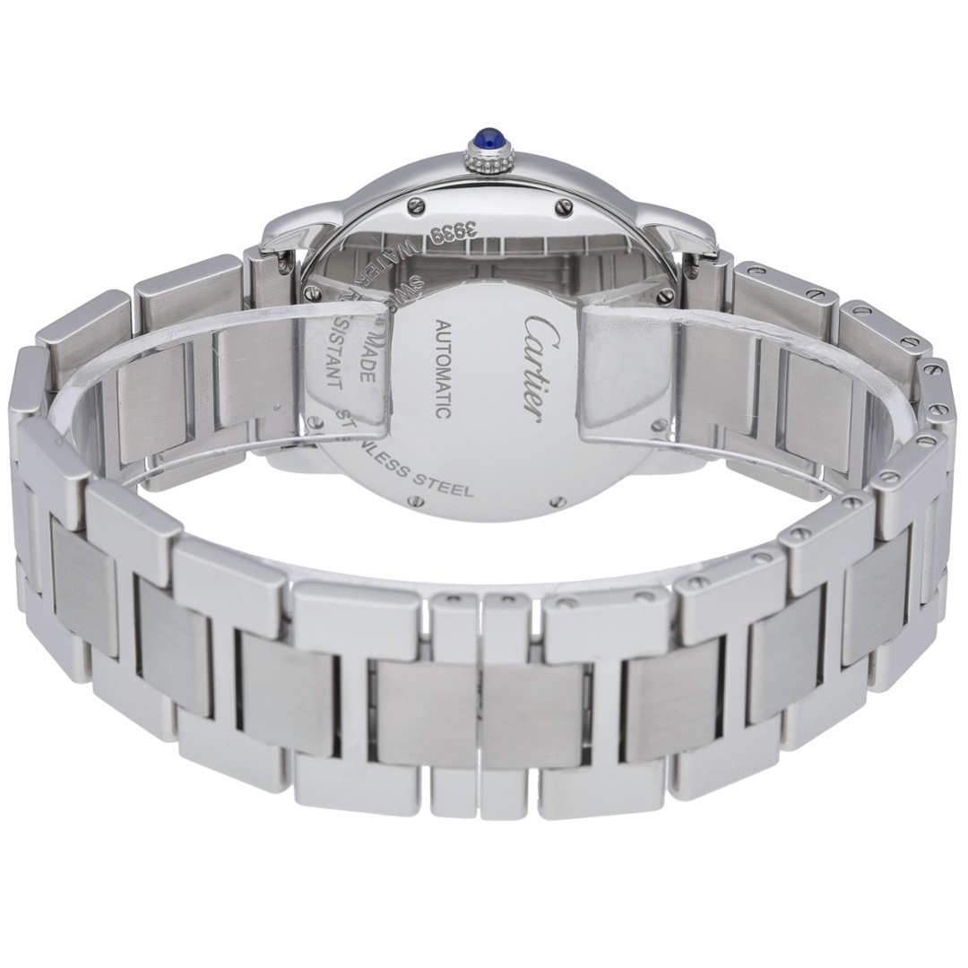 At its core is an automatic movement that delivers reliable everyday performance without compromising the watch’s elegant character. The smooth bezel and integrated stainless steel bracelet give the watch a balanced presence, making it suitable for both formal wear and daily use. Cartier’s signature cabochon-set crown completes the design with a distinctive finishing touch.