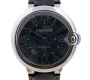 The Cartier Santos de Cartier Watch features a classic square case silhouette, measuring 39mm in diameter, and exudes a bold and confident presence on the wrist. The stainless steel construction offers durability and understated luxury, while the black bezel adds a touch of modernity and contrast to the design. The grey dial provides a clean and sophisticated backdrop for the watch's signature Roman numeral markers and blue sword-shaped hands.