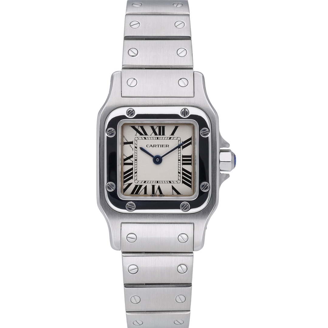 A Cartier Santos Galbee Watch, Stainless Steel on a Silver Dial