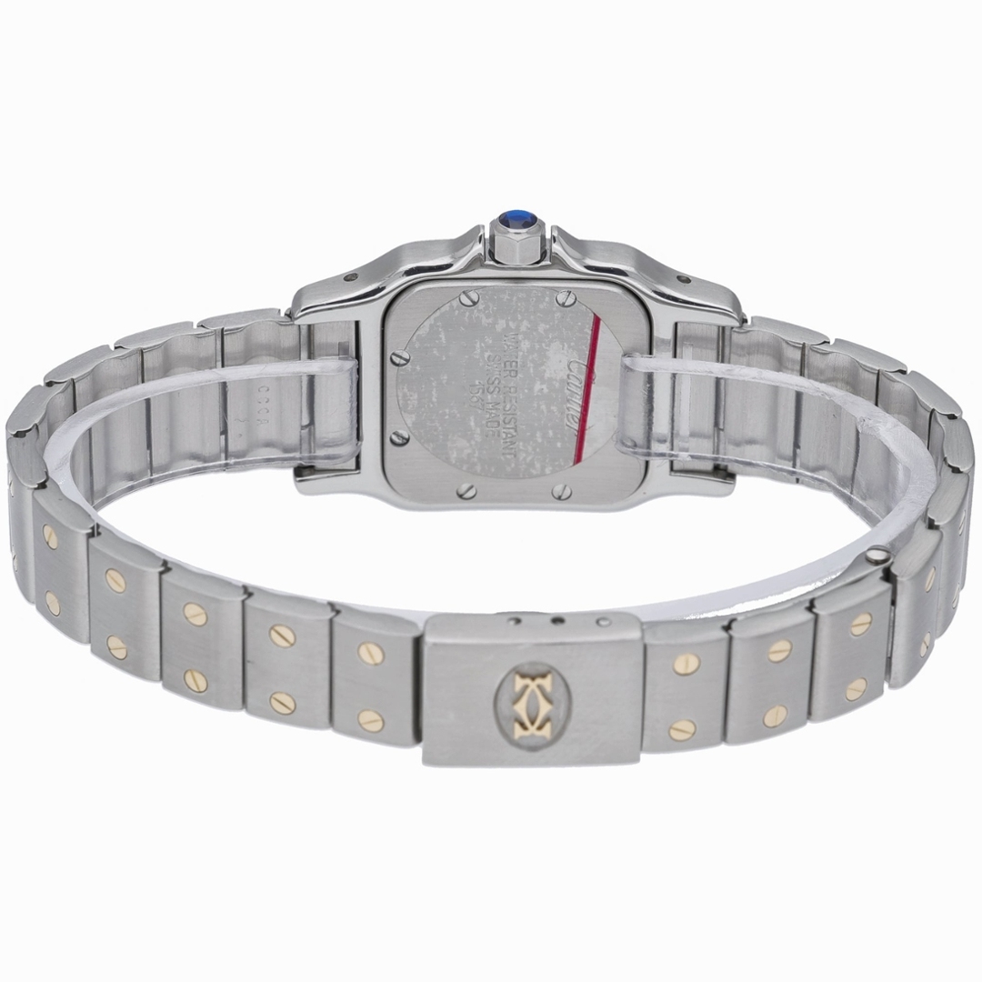 The watch is the reference 1567 and is powered by the Cartier Calibre 687 quartz movement, delivering dependable accuracy with minimal upkeep. Produced around 2000, this later-generation Santos Galbée features a slimmer, more ergonomic case design while preserving the timeless proportions that have made the model so enduring. Its compact size and balanced bi-metal finish make it an elegant and versatile choice for everyday wear.