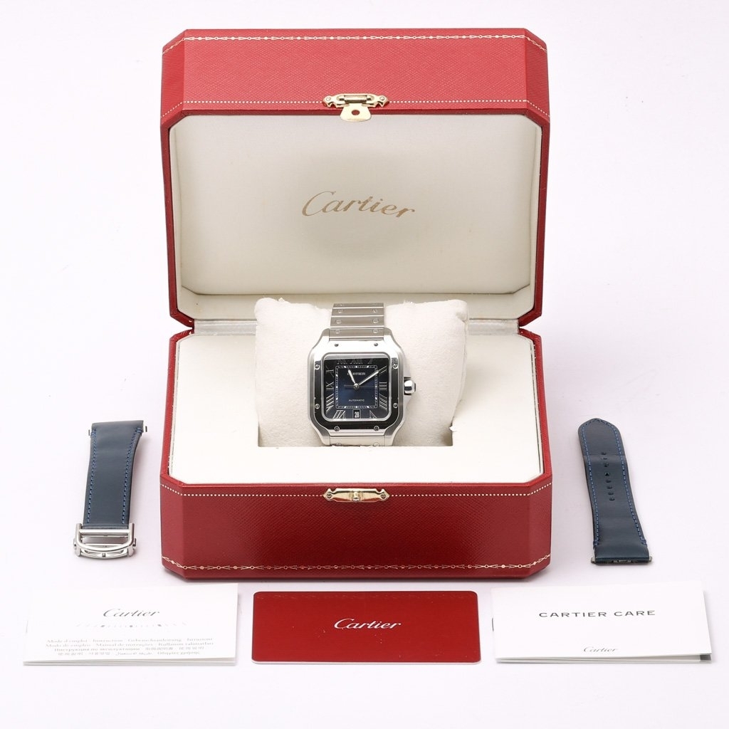 Powering the watch is an automatic Cartier mechanical movement that delivers reliable performance and everyday practicality. Designed for modern use, the movement provides smooth operation, consistent accuracy, and ease of ownership. The integrated steel bracelet enhances comfort and balance, while Cartier’s thoughtful case and bracelet engineering reinforce the Santos’ reputation as a true daily luxury watch rather than a purely dress-focused piece.