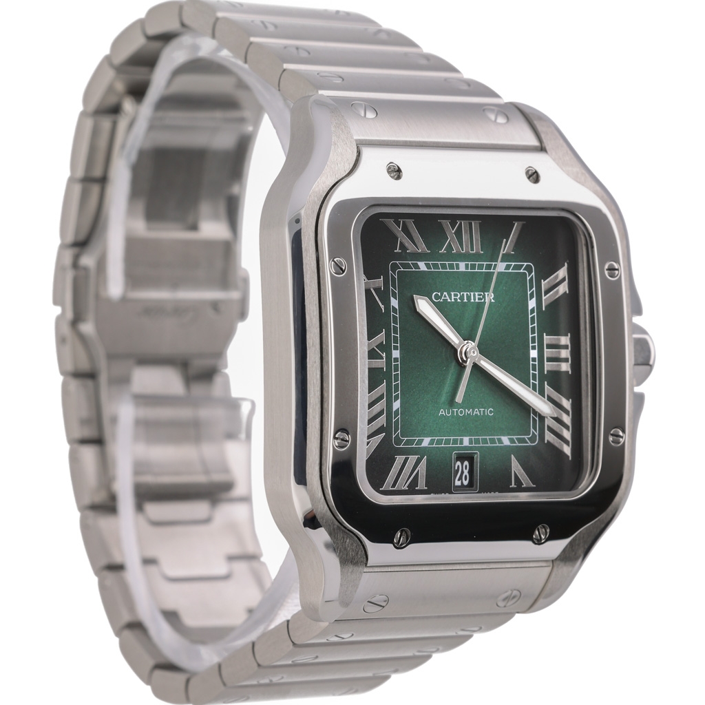 A Cartier Santos Watch, Stainless Steel with a Green Dial