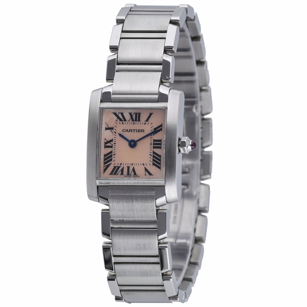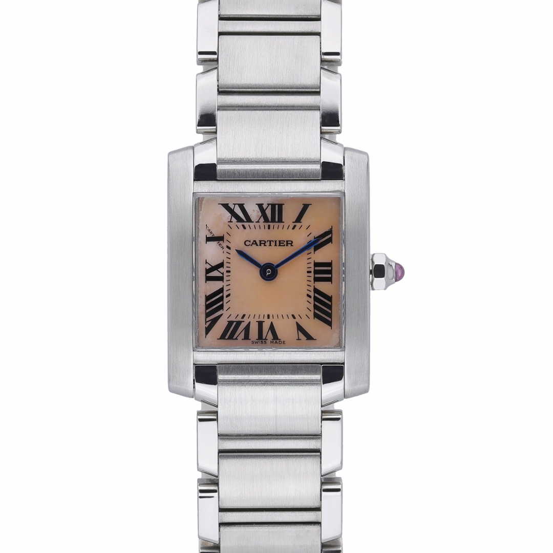 A Cartier Tank Francaise Watch, Stainless Steel on a Mother of Pearl Dial