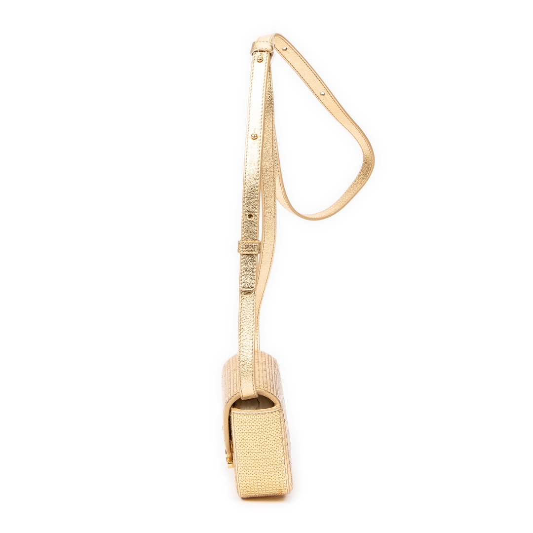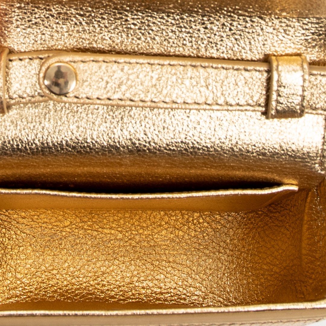 A vintage Celine gold canvas Ltd. Ed. Mini Triomphe Crossbody bag with a certificate of authenticity, Approximately 10cm height, 11cm width.