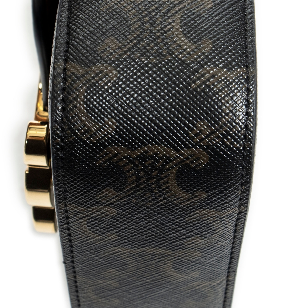 A vintage Celine tan coated canvas Mini Triomphe bag with a certificate of authenticity, Approximately 10cm height, 12cm width.