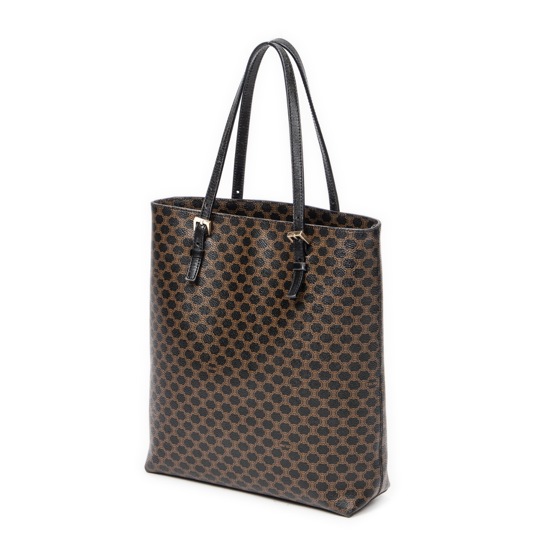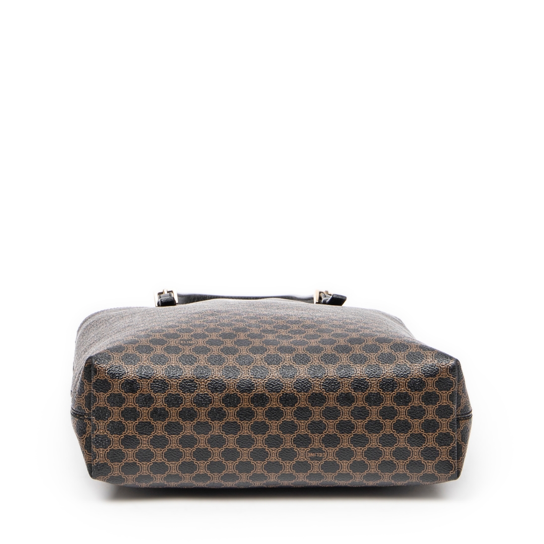 A vintage Celine black/brown coated canvas Shopping Tote bag with a certificate of authenticity, Approximately 29cm height, 25cm width.