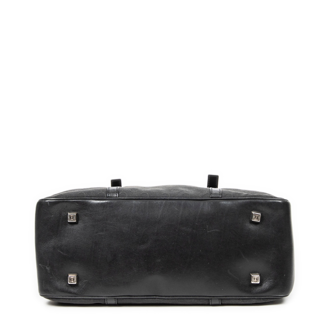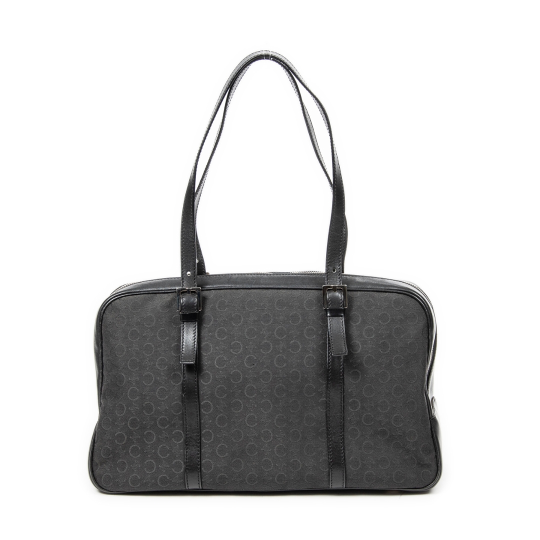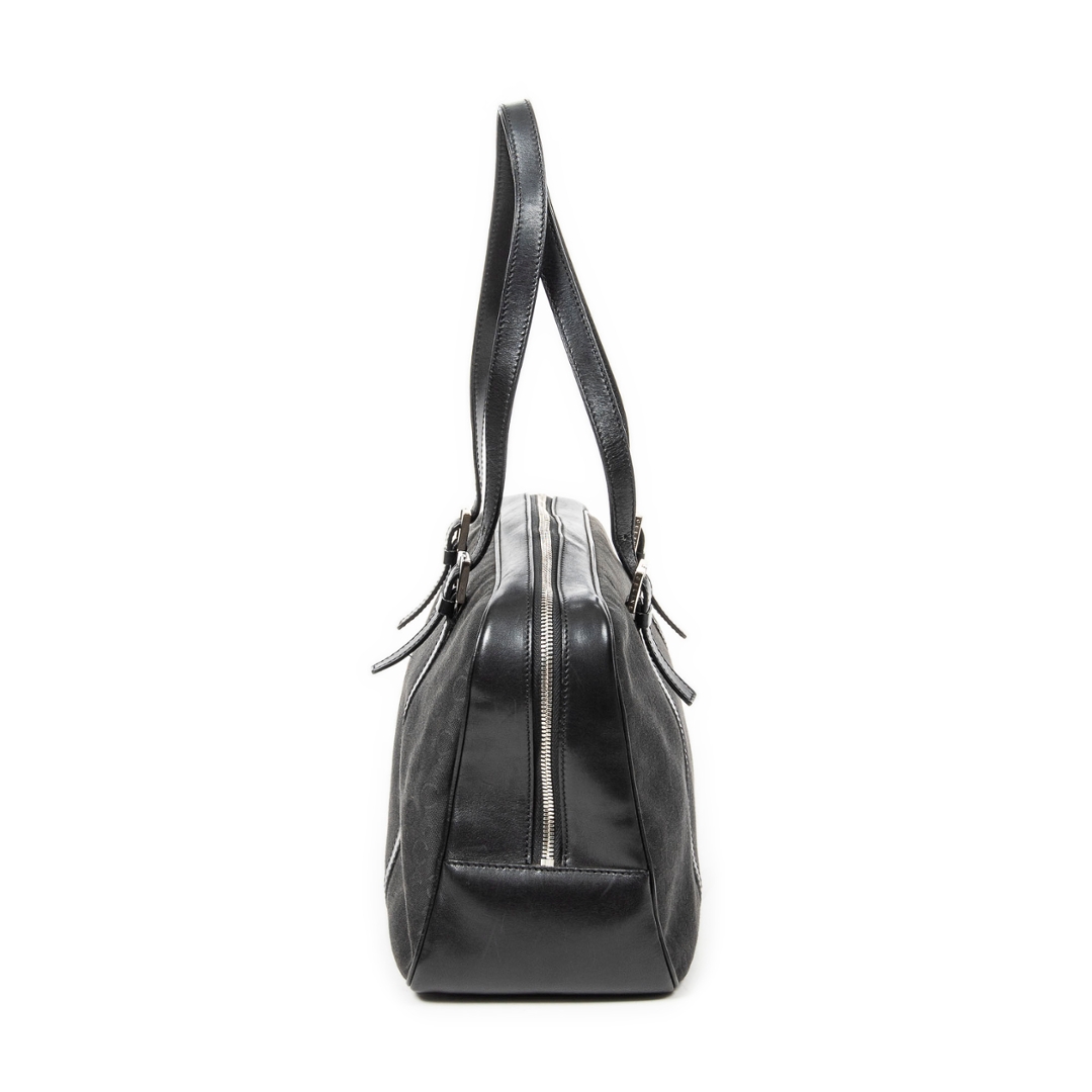 A vintage Celine black canvas Vintage Boston Bag with a certificate of authenticity, Approximately 21cm height, 37cm width.