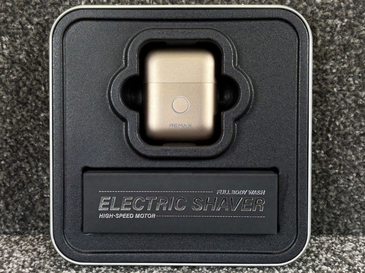 A brand new champagne gold all-metal mini electric shaver designed for convenience, performance, and modern portability. Finished in a sleek metallic champagne gold tone, this compact device offers a premium feel while remaining lightweight and easy to carry, making it ideal for travel, daily grooming, or on-the-go touch-ups. Its durable all-metal construction enhances both longevity and style.