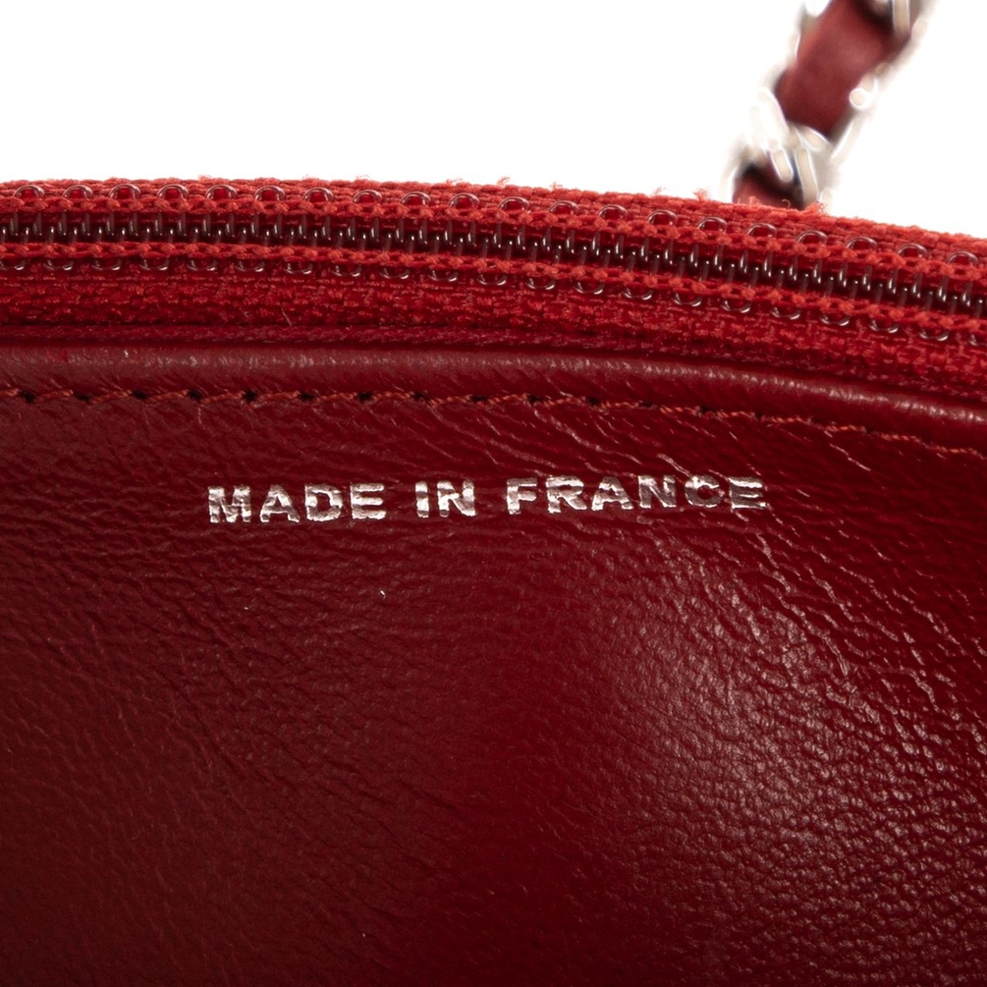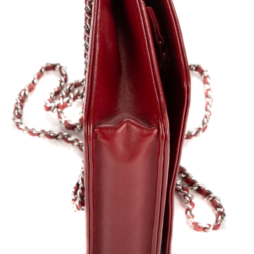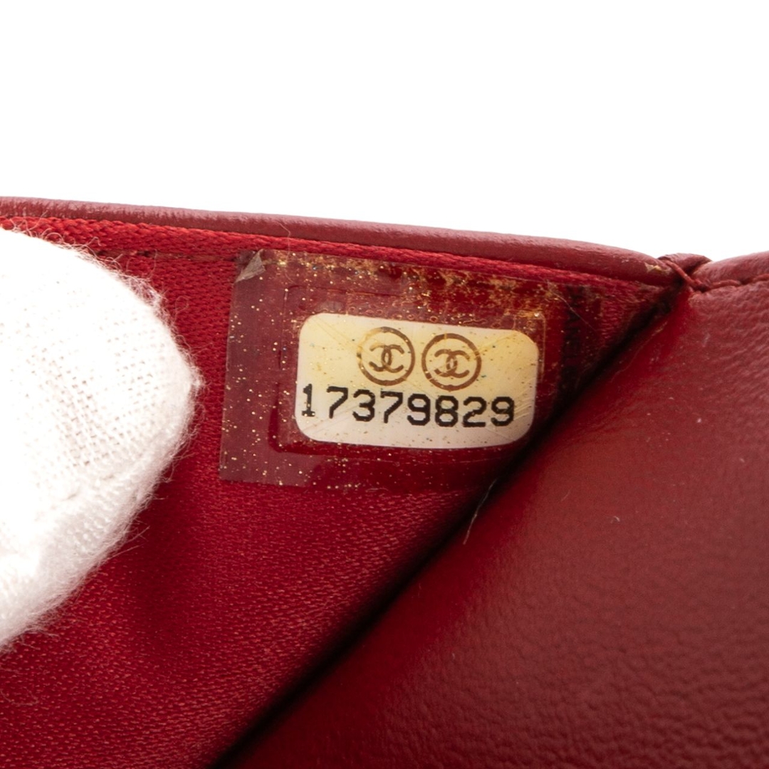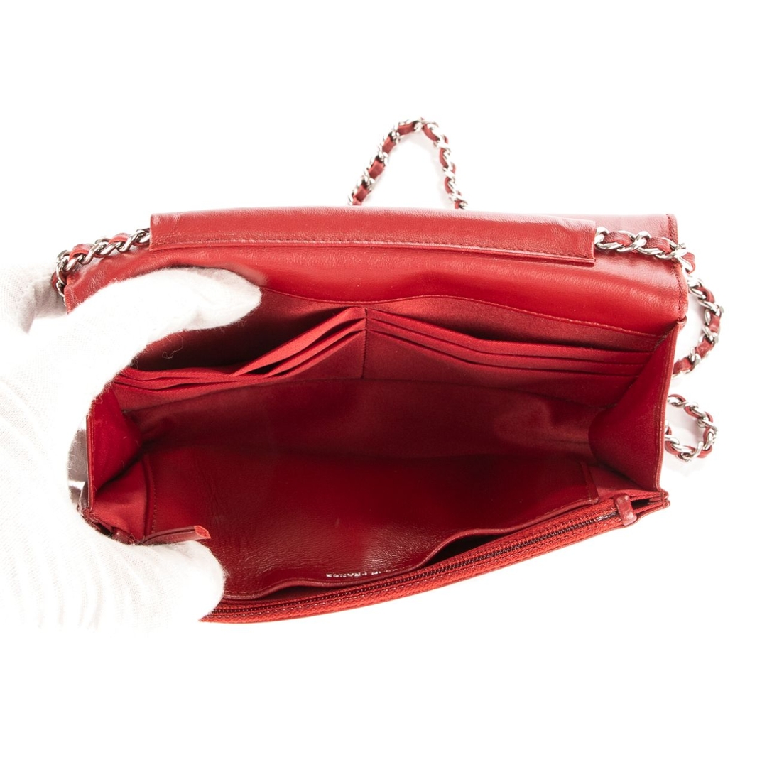 A vintage Dark Red calf leather Chanel Camelia Wallet on Chain with a certificate of authenticity, Approximately 12.4cm height, 19cm width.