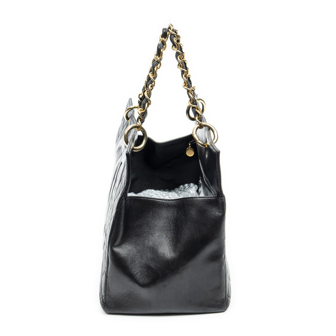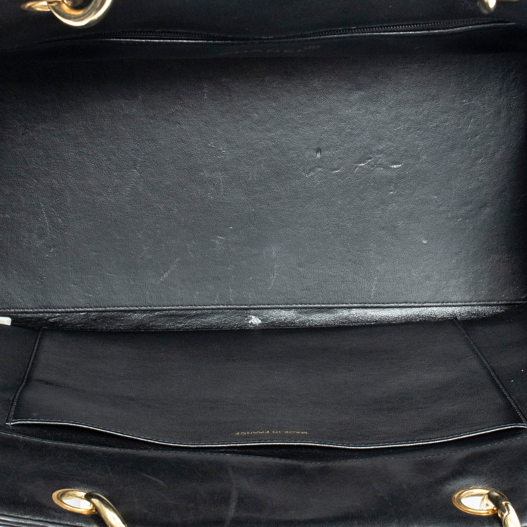 A black vintage calf leather Chanel CC Grand Shopping Tote bag with a certificate of authenticity, Approximately 24cm height, 32.5cm width.