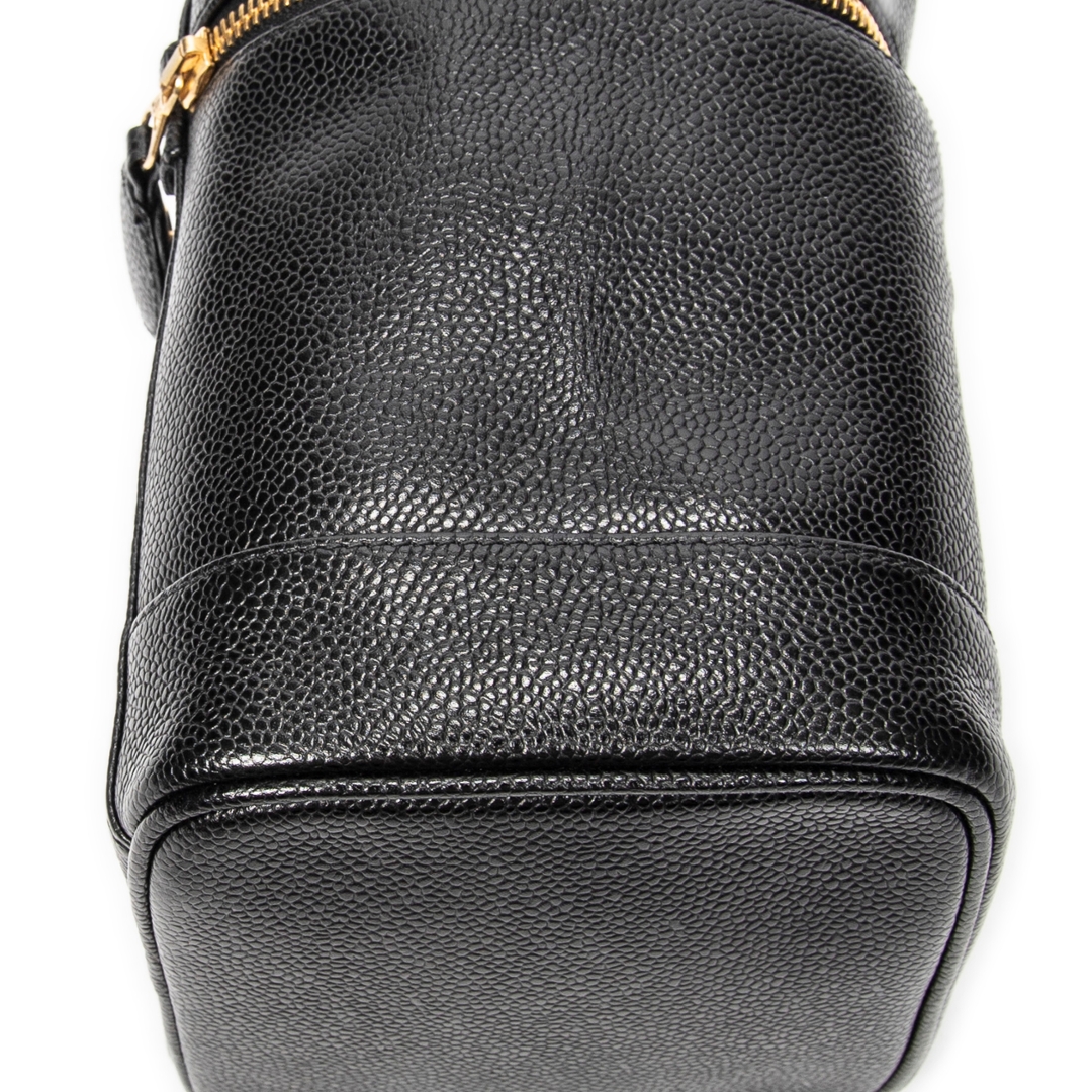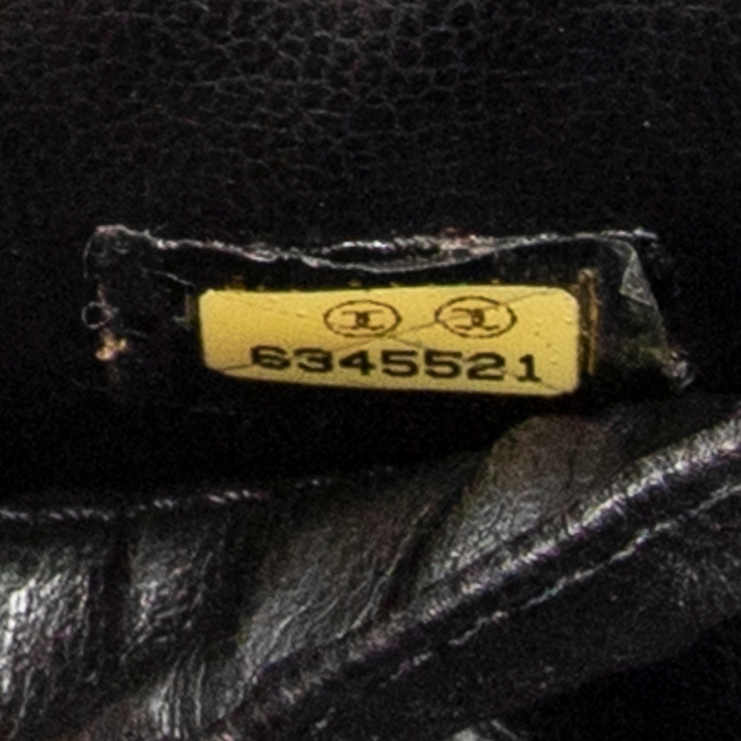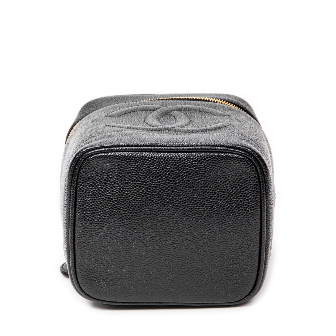 A vintage Chanel black calf leather CC Tall Vanity Case bag with a certificate of authenticity, Approximately 12cm height, 15cm width.