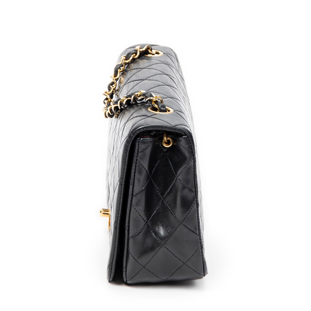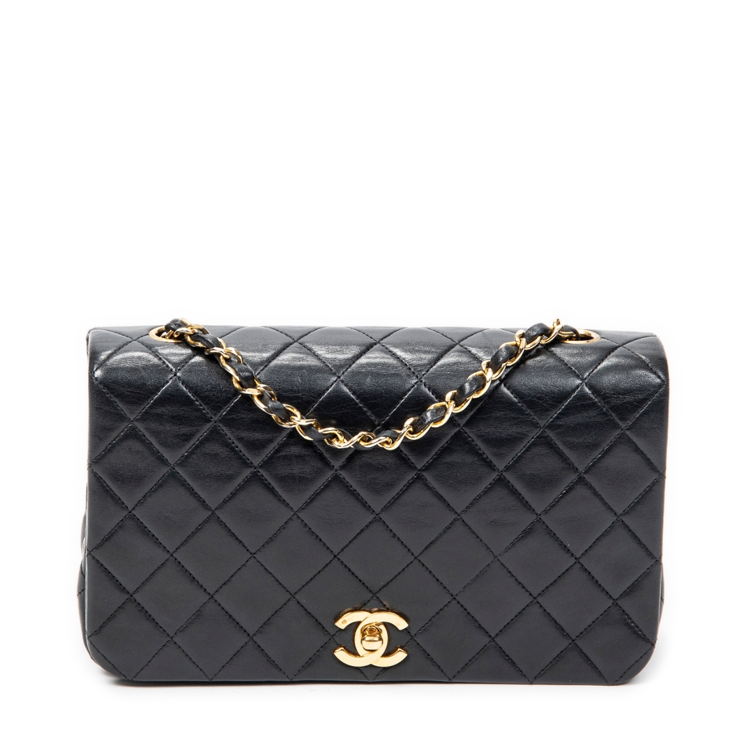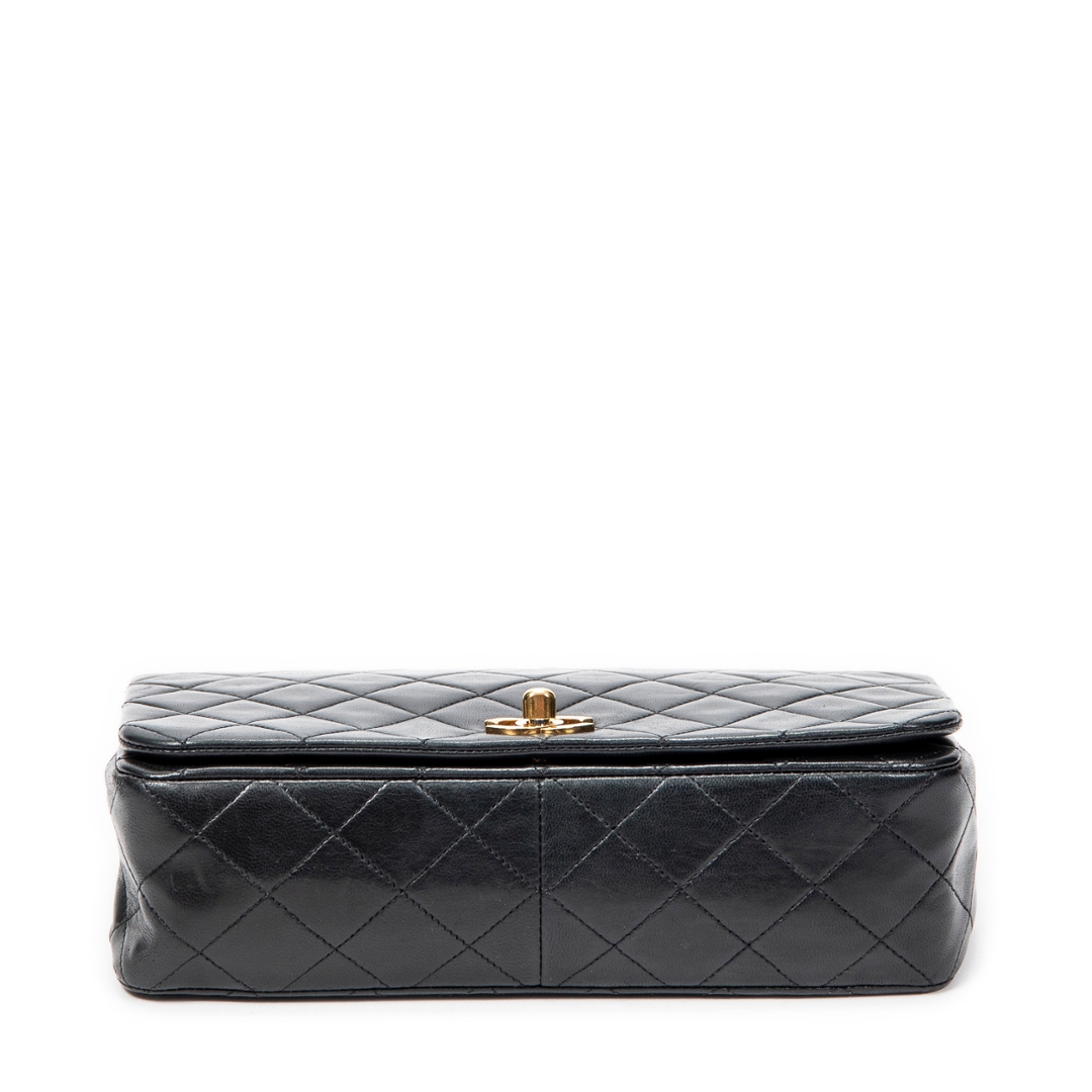 A vintage Chanel black quilted lambskin leather CC Turn Lock Mademoiselle Full Flap bag, representing one of the most iconic and enduring designs from the house. Crafted from supple lambskin, the classic diamond quilting enhances both texture and structure, while the gold-tone CC turn-lock closure adds a refined focal point. The leather-interwoven chain strap completes the signature Chanel aesthetic.