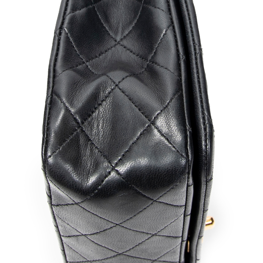 A vintage Chanel black quilted lambskin leather CC Turn Lock Mademoiselle Full Flap bag with a certificate of authenticity, Approximately 14cm height, 23cm width.