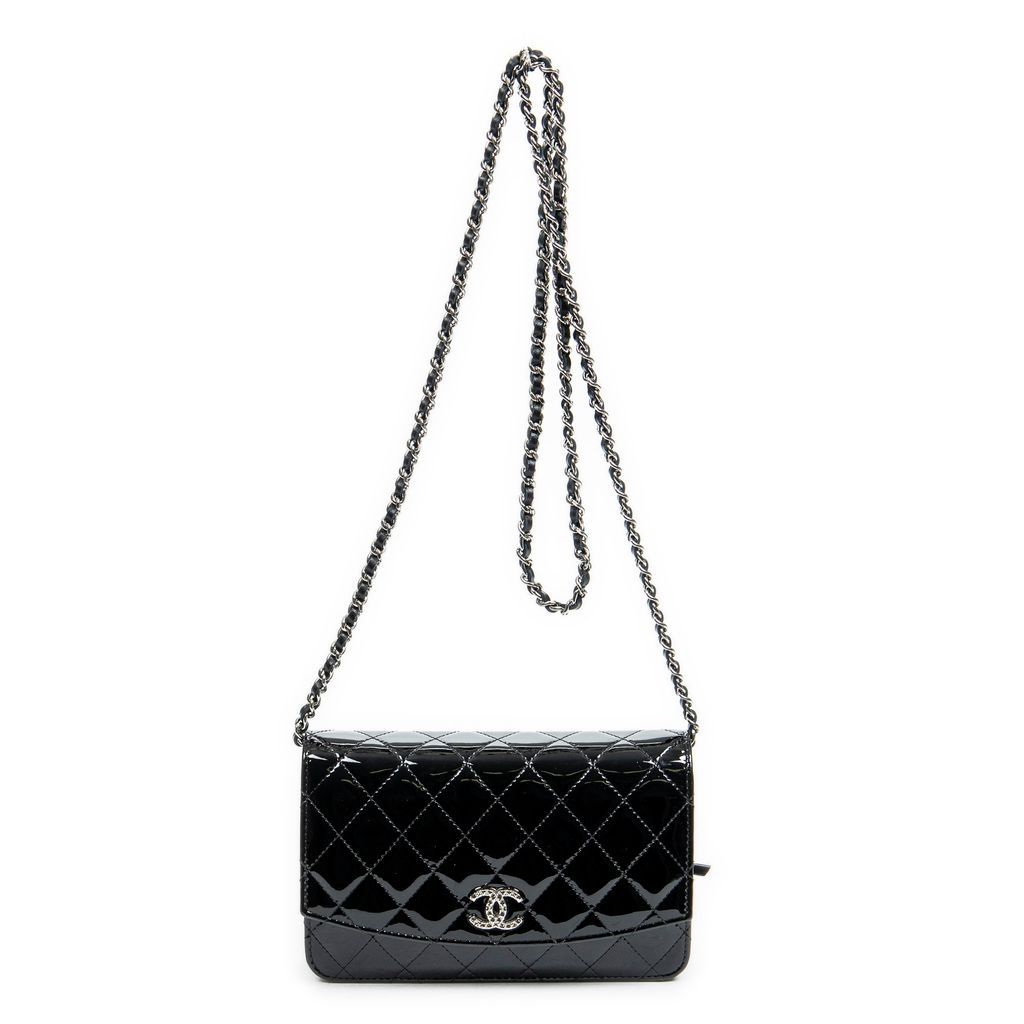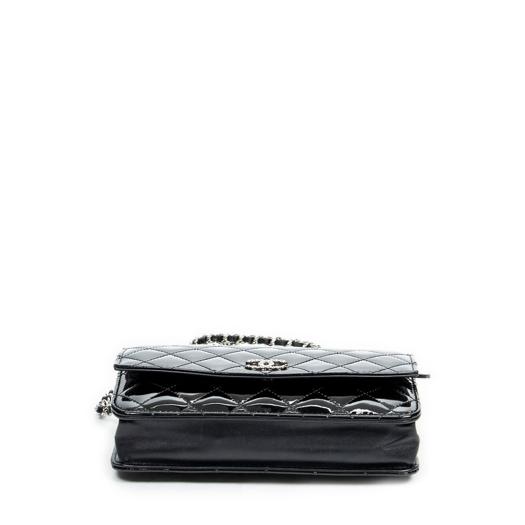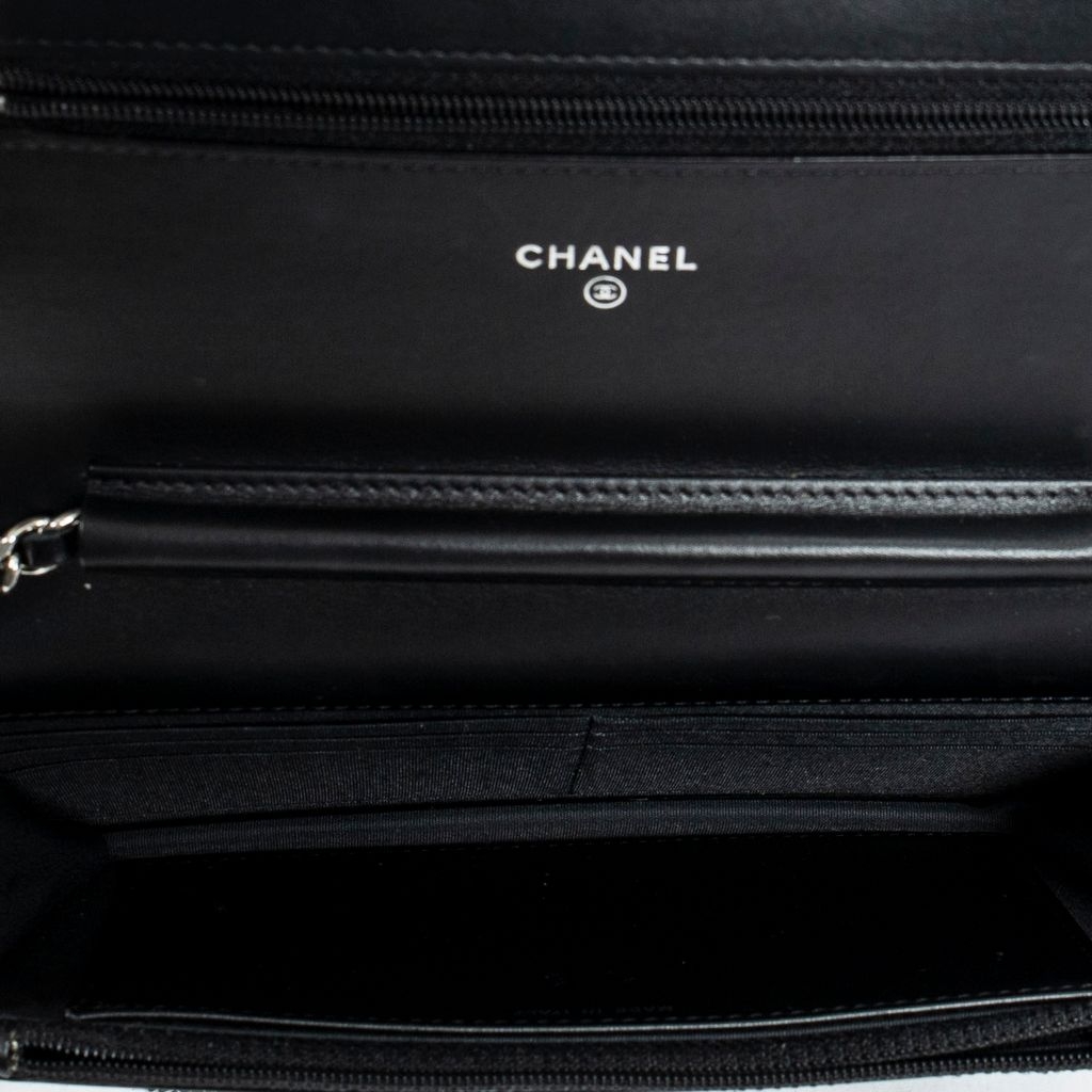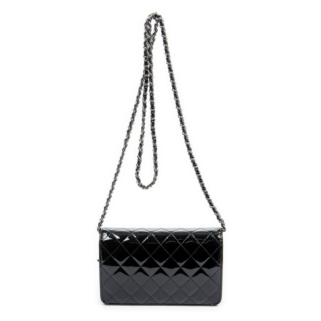 A vintage Chanel black calf leather CC Wallet on Chain bag with a certificate of authenticity, Approximately 11.5cm height, 19cm width.