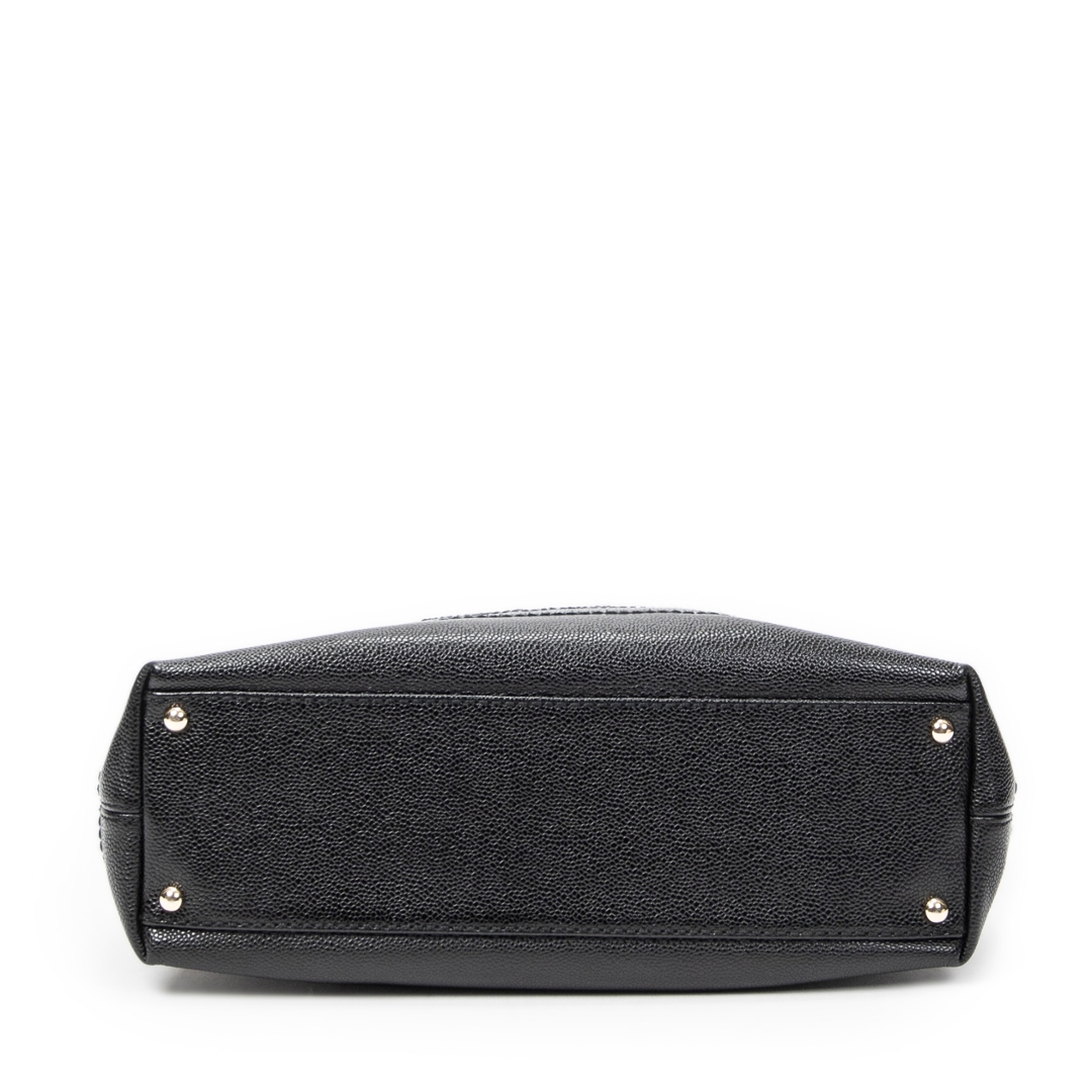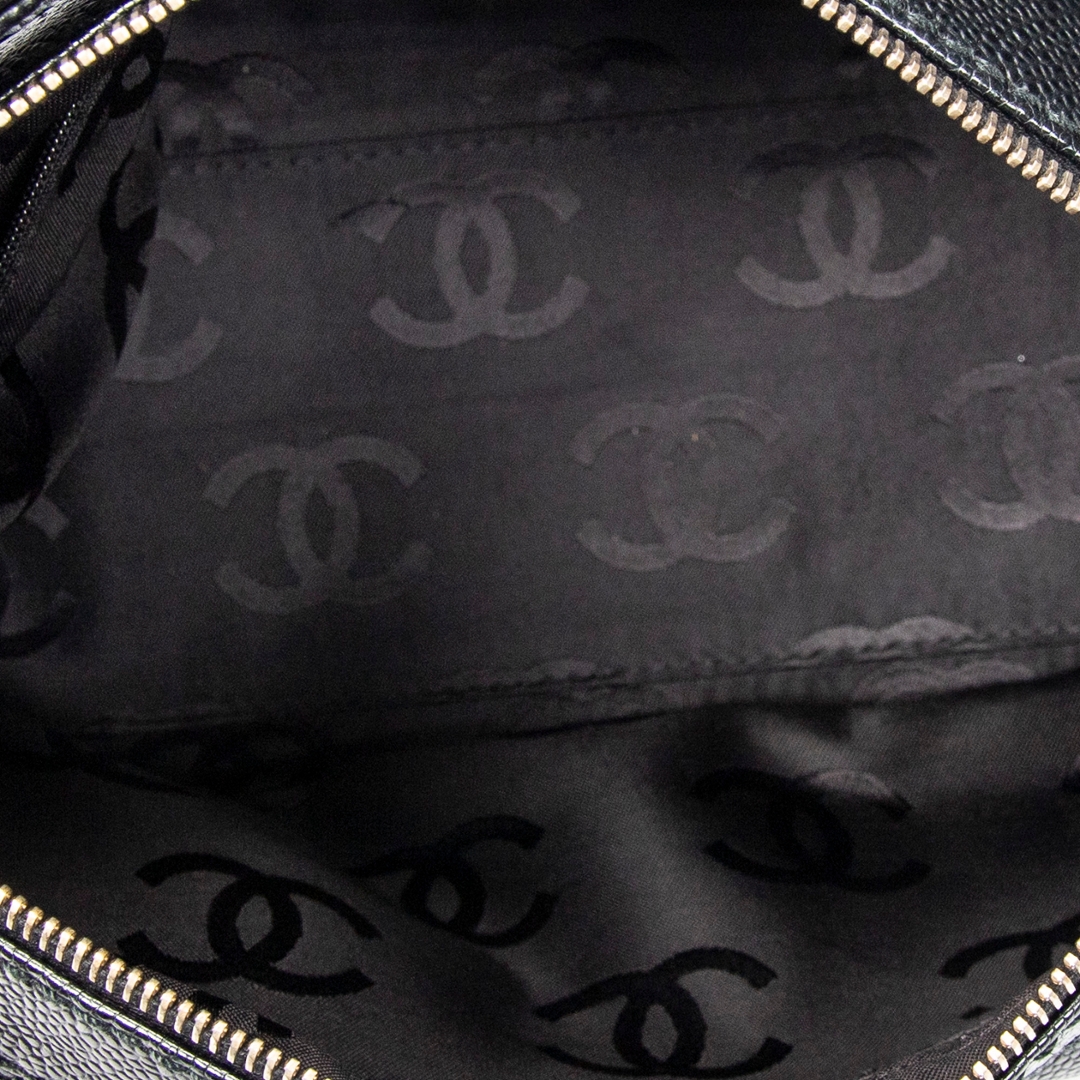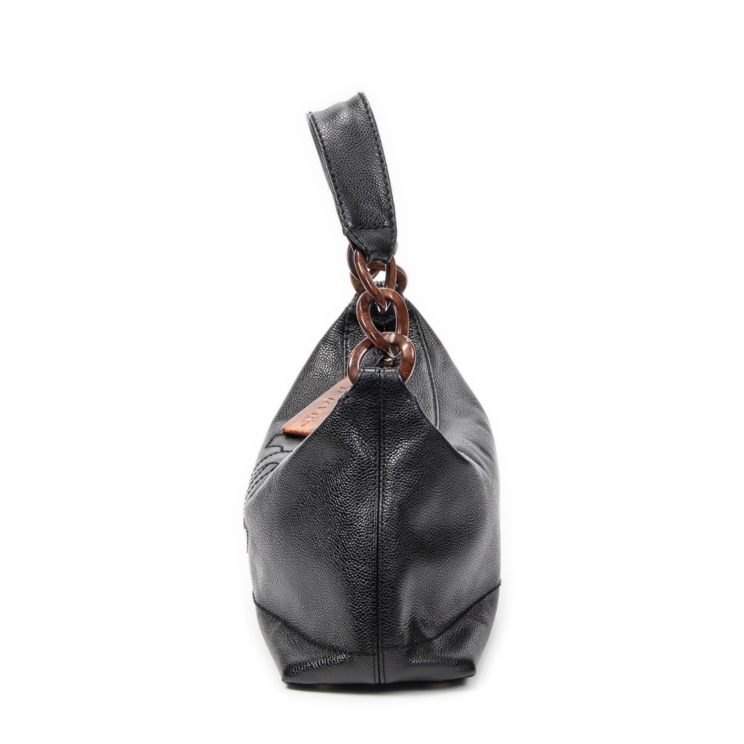 A vintage Chanel black calf leather CC Wood Chain Hobo bag with a certificate of authenticity, Approximately 20cm height, 33cm width.