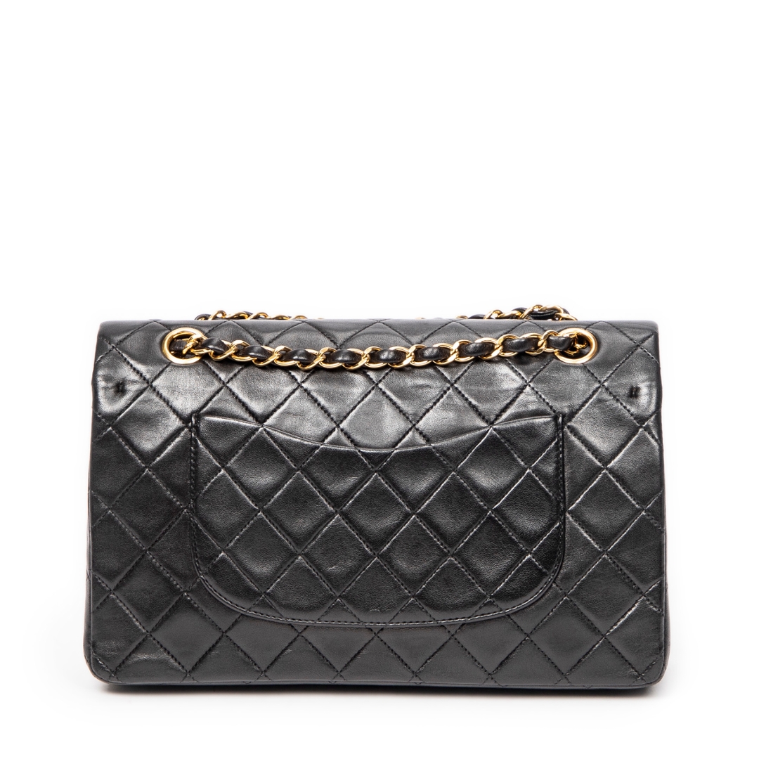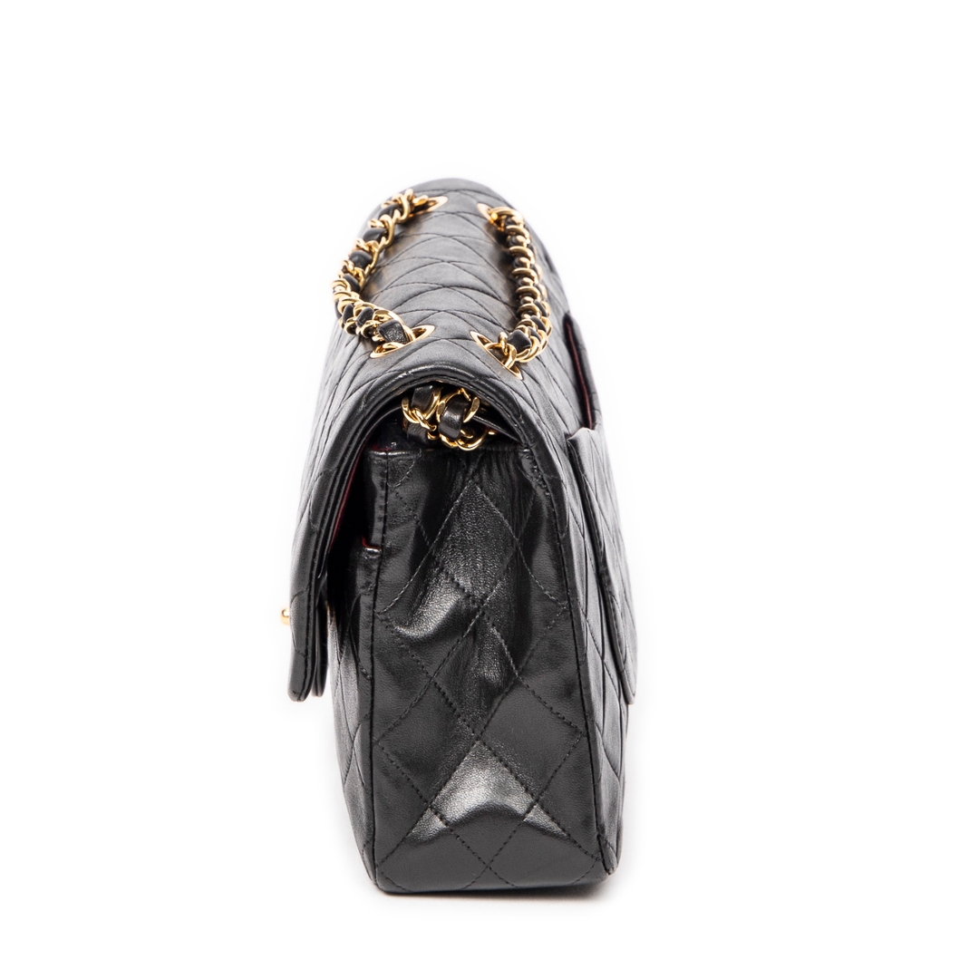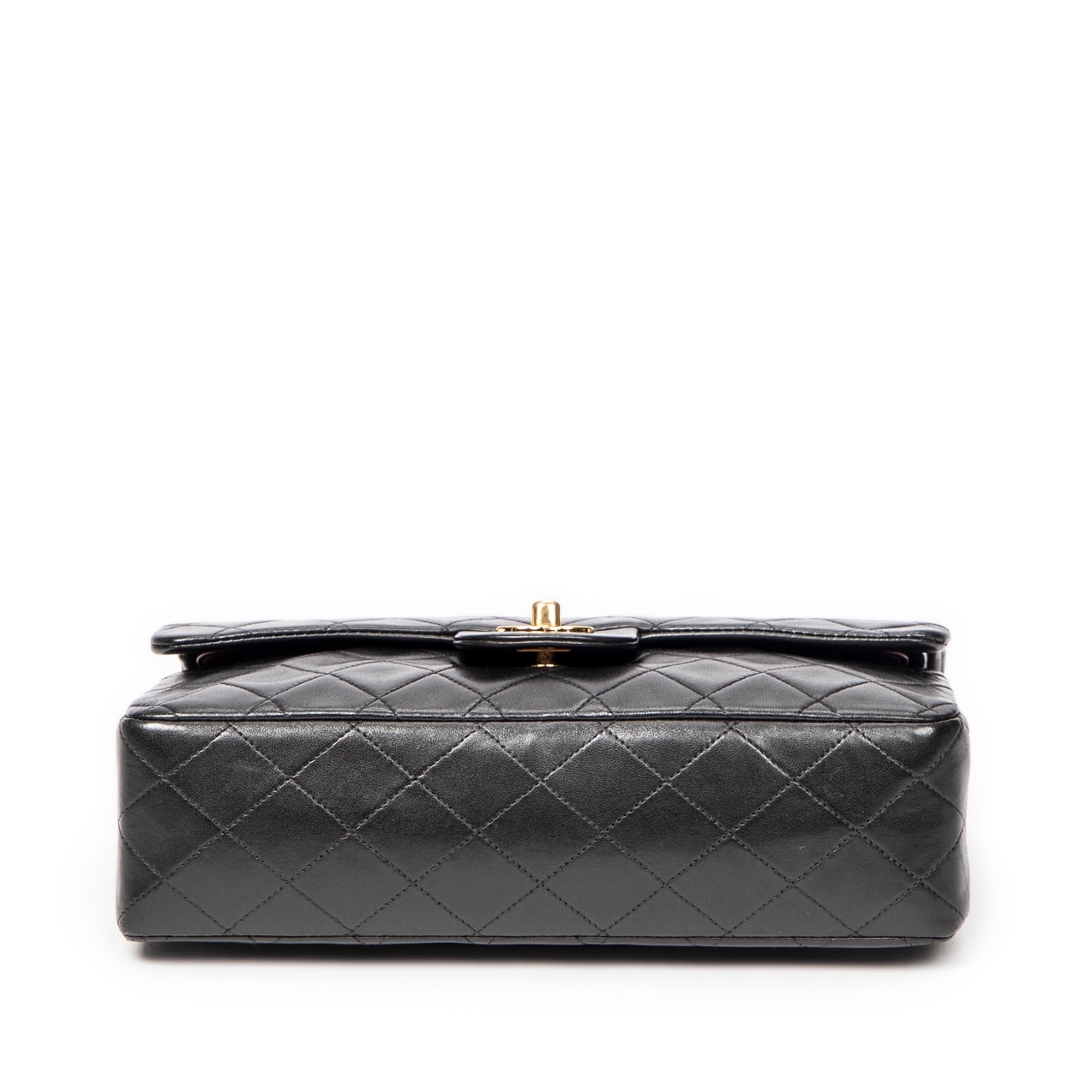 A vintage Chanel black quilted lambskin leather Classic Double Flap bag with a certificate of authenticity, Approximately 16cm height, 26cm width.