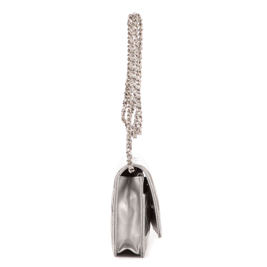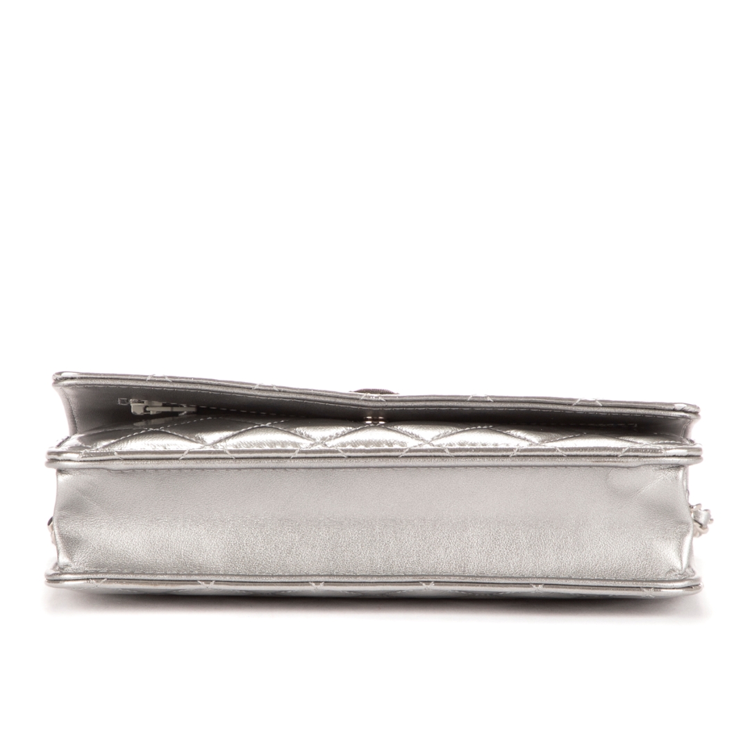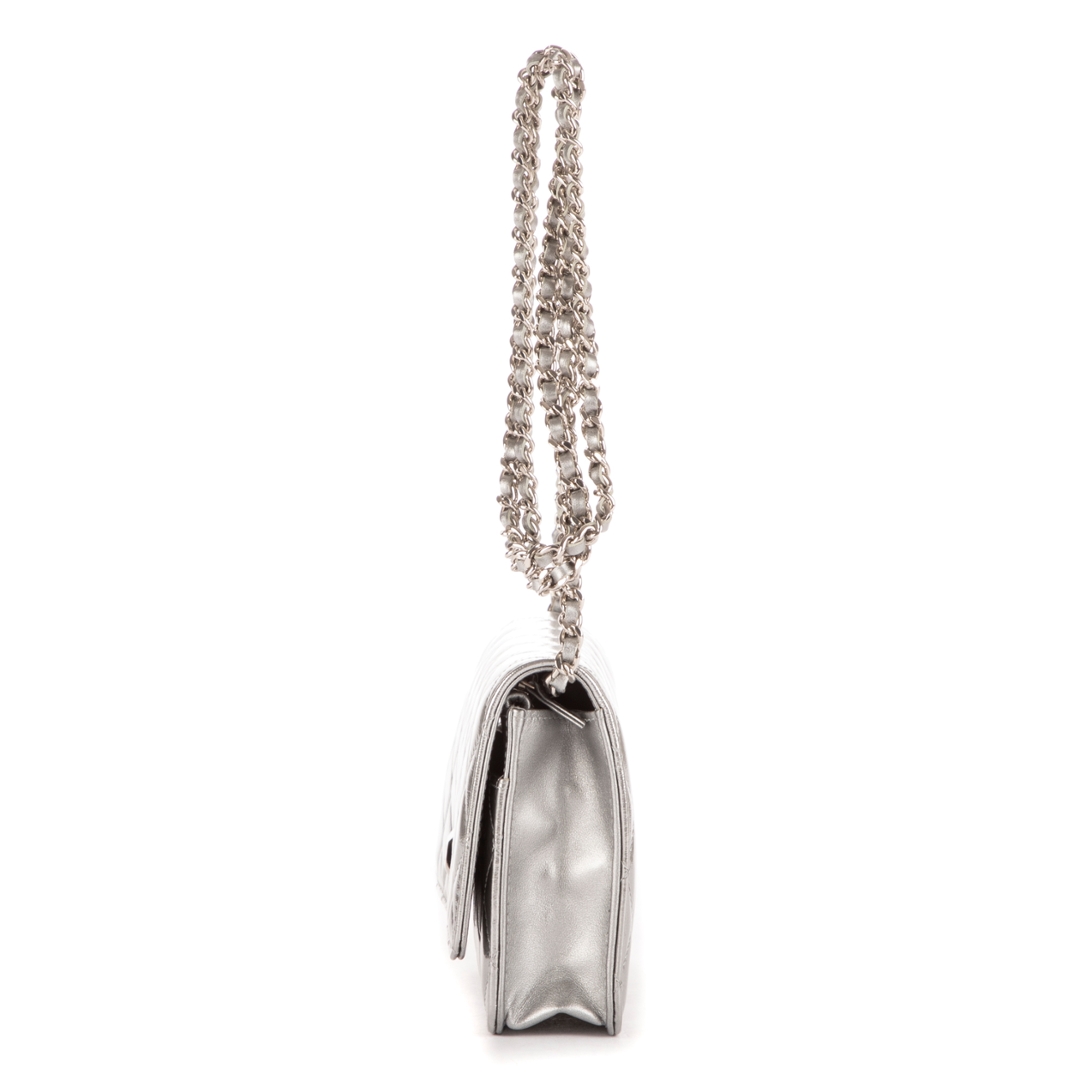 A vintage Chanel metallic silver calf leather Classic Wallet on Chain bag with a certificate of authenticity, Approximately 12cm height, 19cm width.