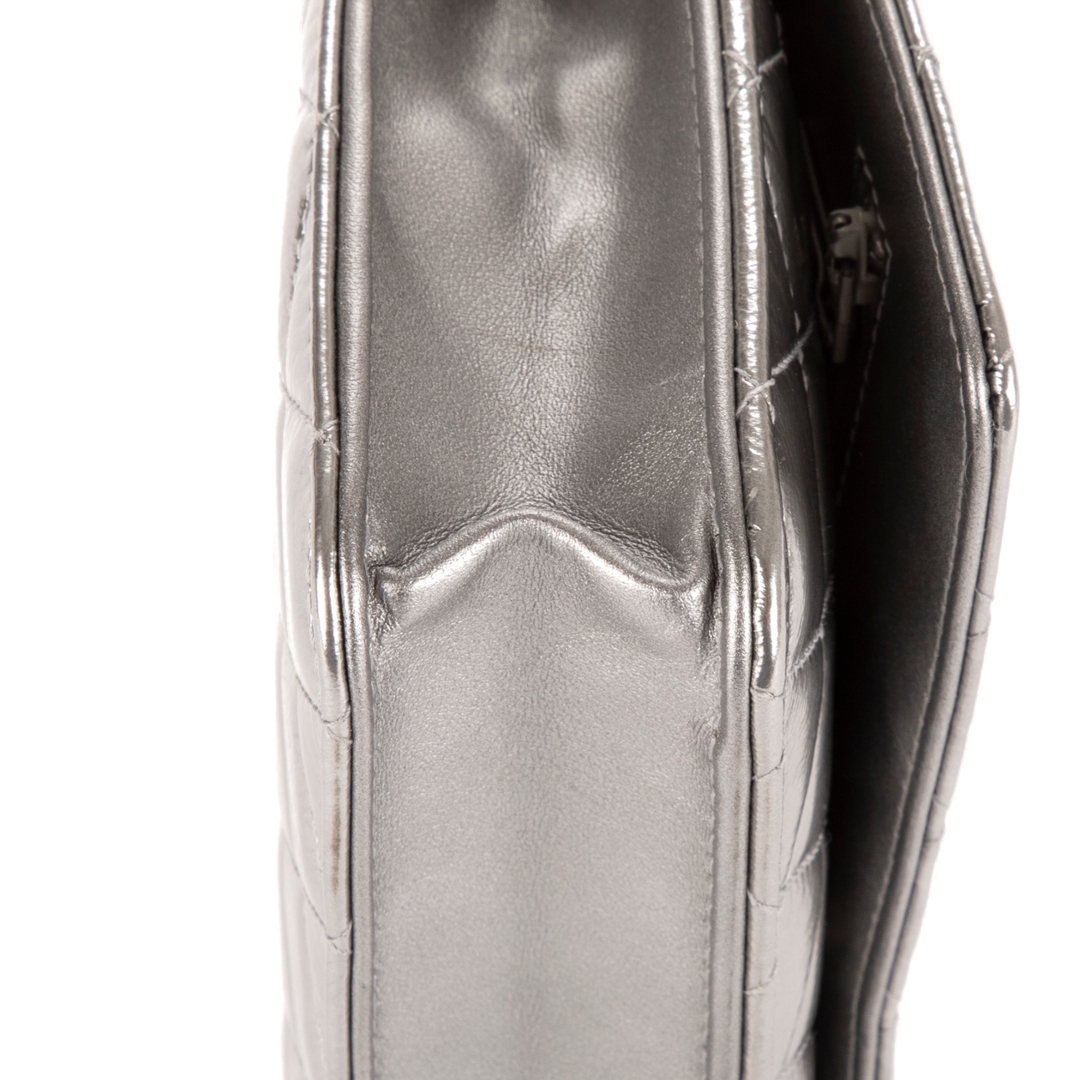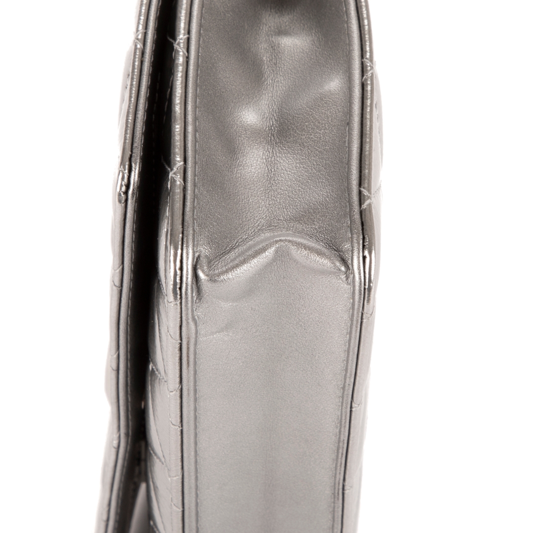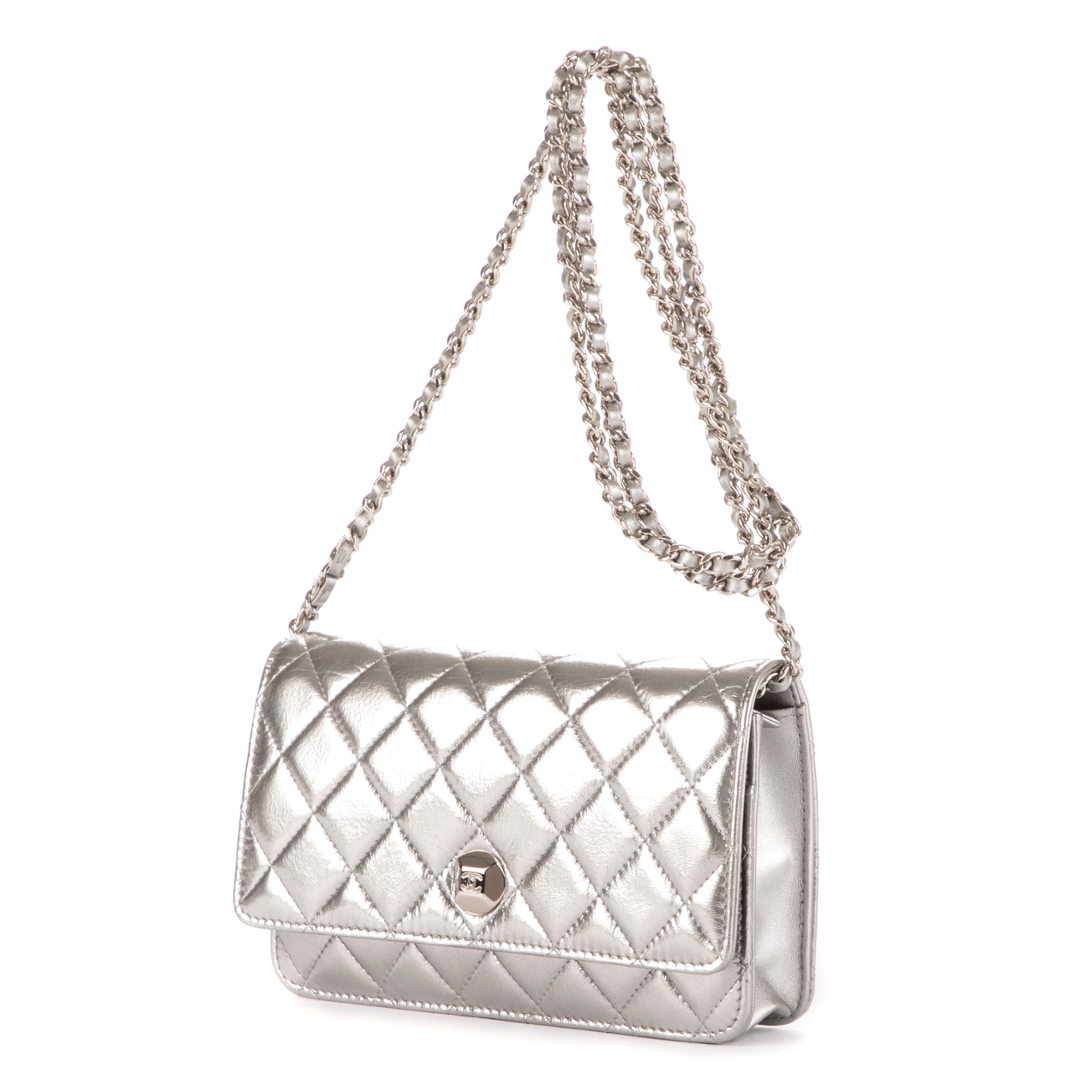 A vintage Chanel metallic silver calf leather Classic Wallet on Chain bag with a certificate of authenticity, Approximately 12cm height, 19cm width.