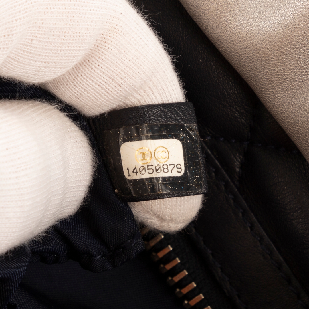 A vintage Chanel silver calf leather Cocoon Reversible bag with a certificate of authenticity, Approximately 24cm height, 30cm width.