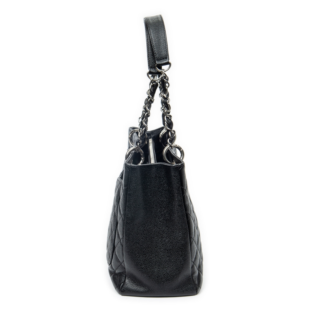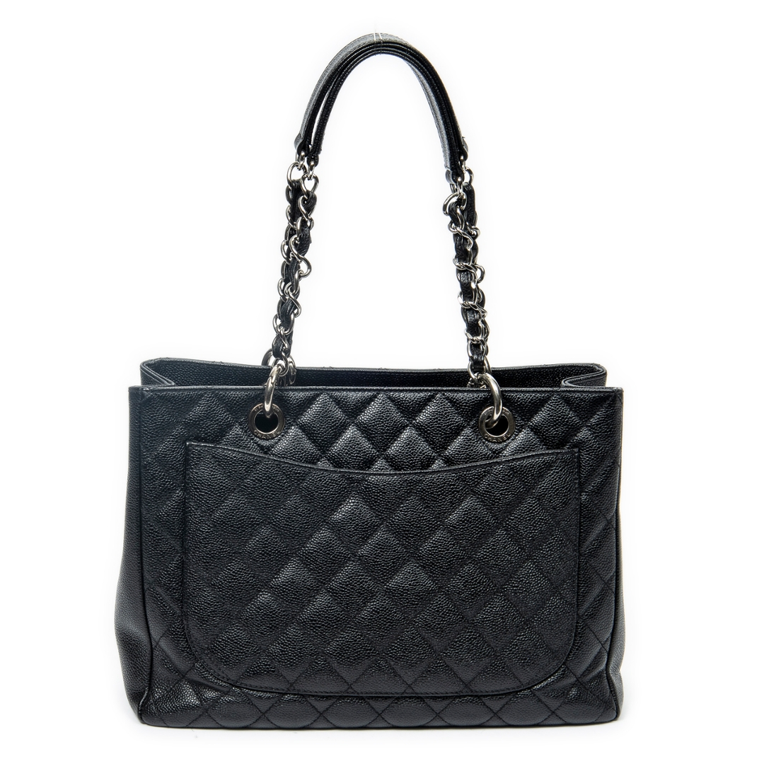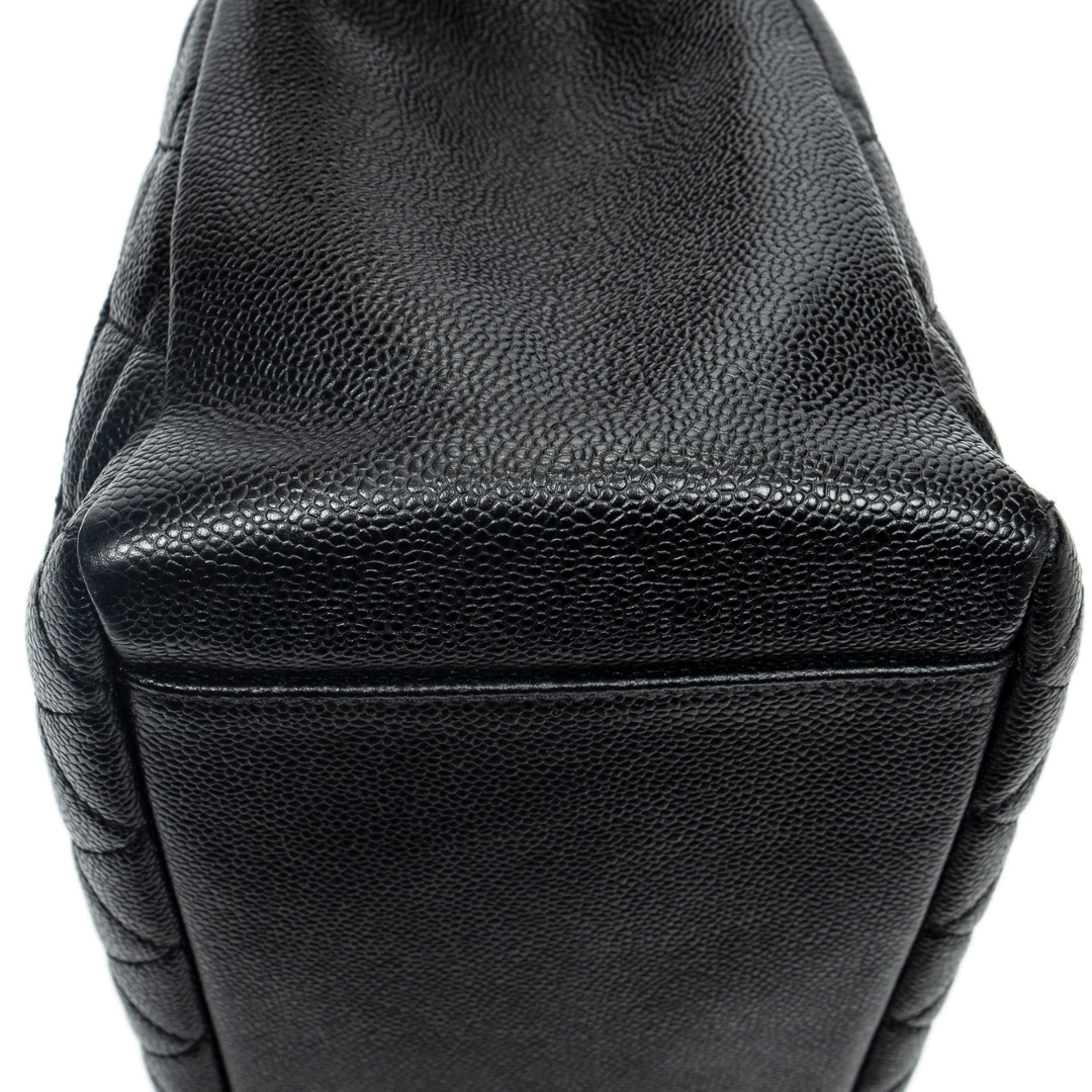 A vintage Chanel black quilted calf leather Grand Shopping Tote bag with a certificate of authenticity, Approximately 23cm height, 34cm width.