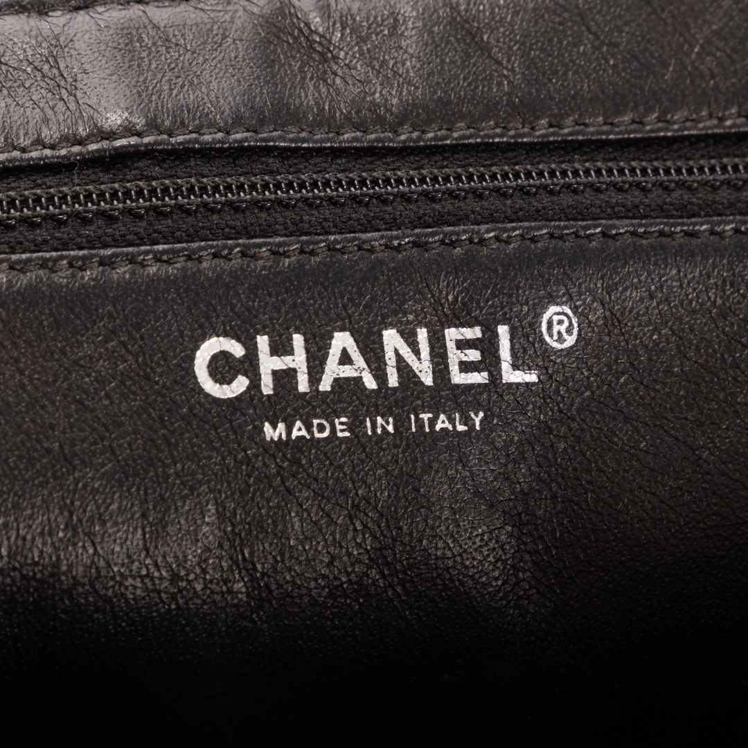 A vintage Chanel black calf leather Half Moon Tote bag with a certificate of authenticity, Approximately 18cm height, 25cm width.