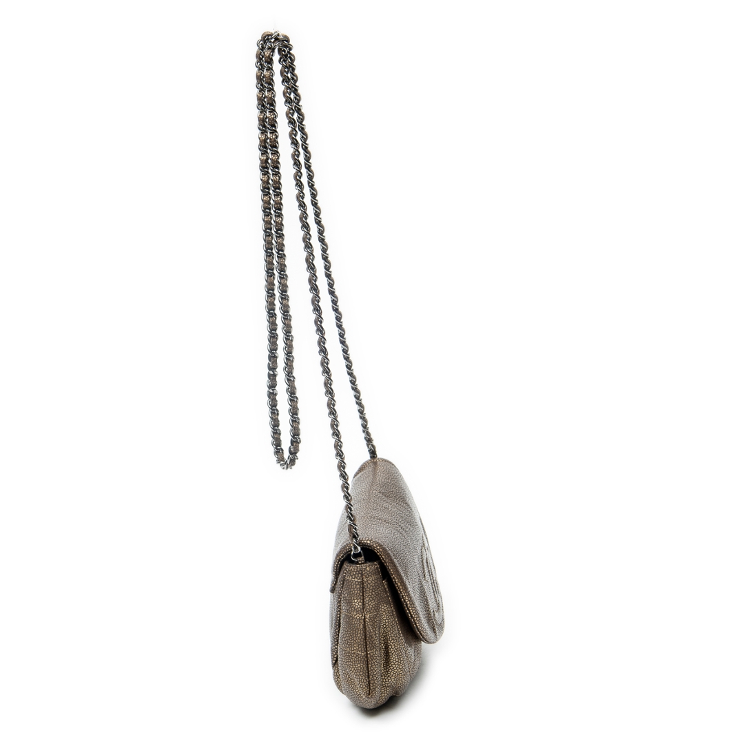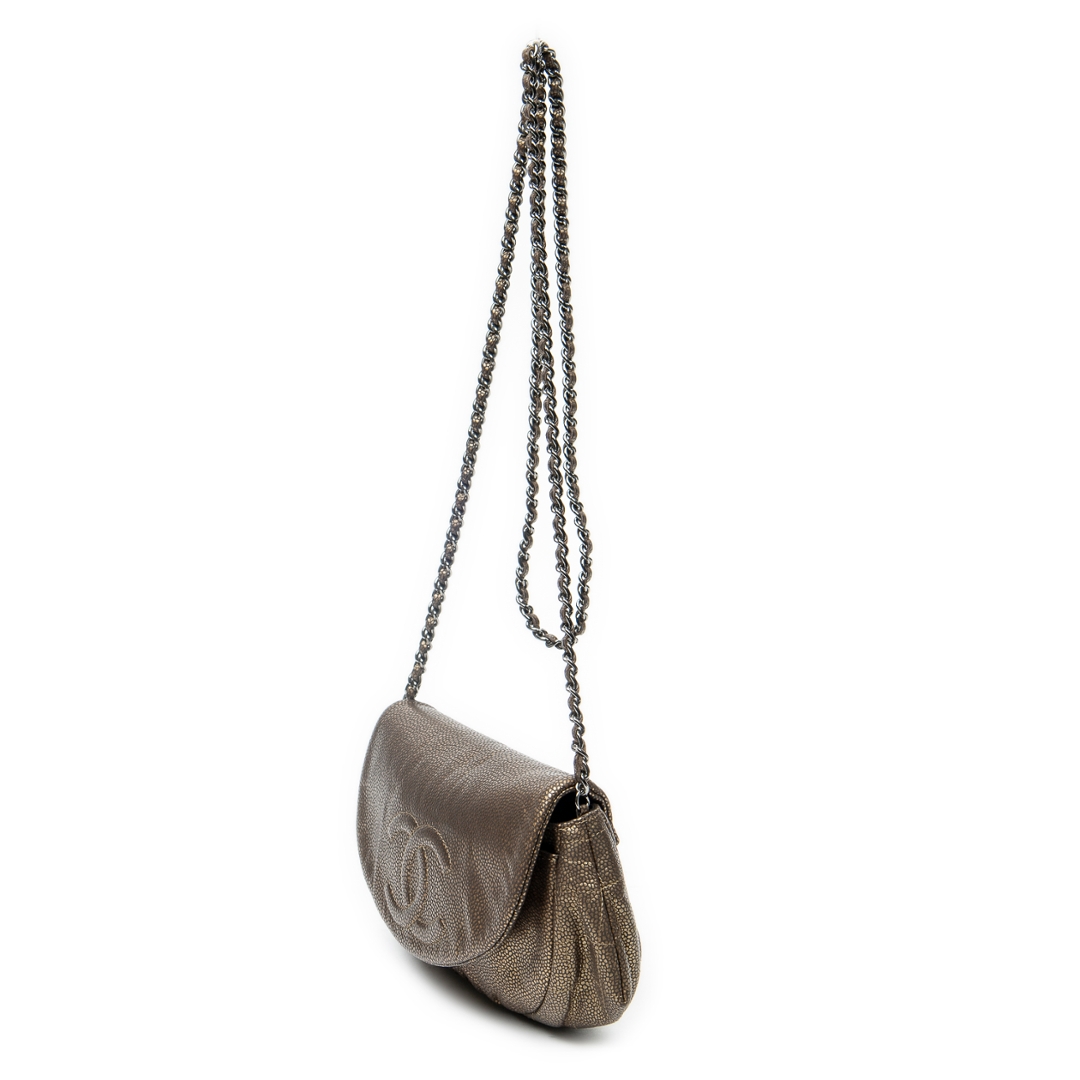 A vintage Chanel bronze calf leather Half Moon Wallet on Chain bag with a certificate of authenticity, Approximately 12cm height, 26cm width.