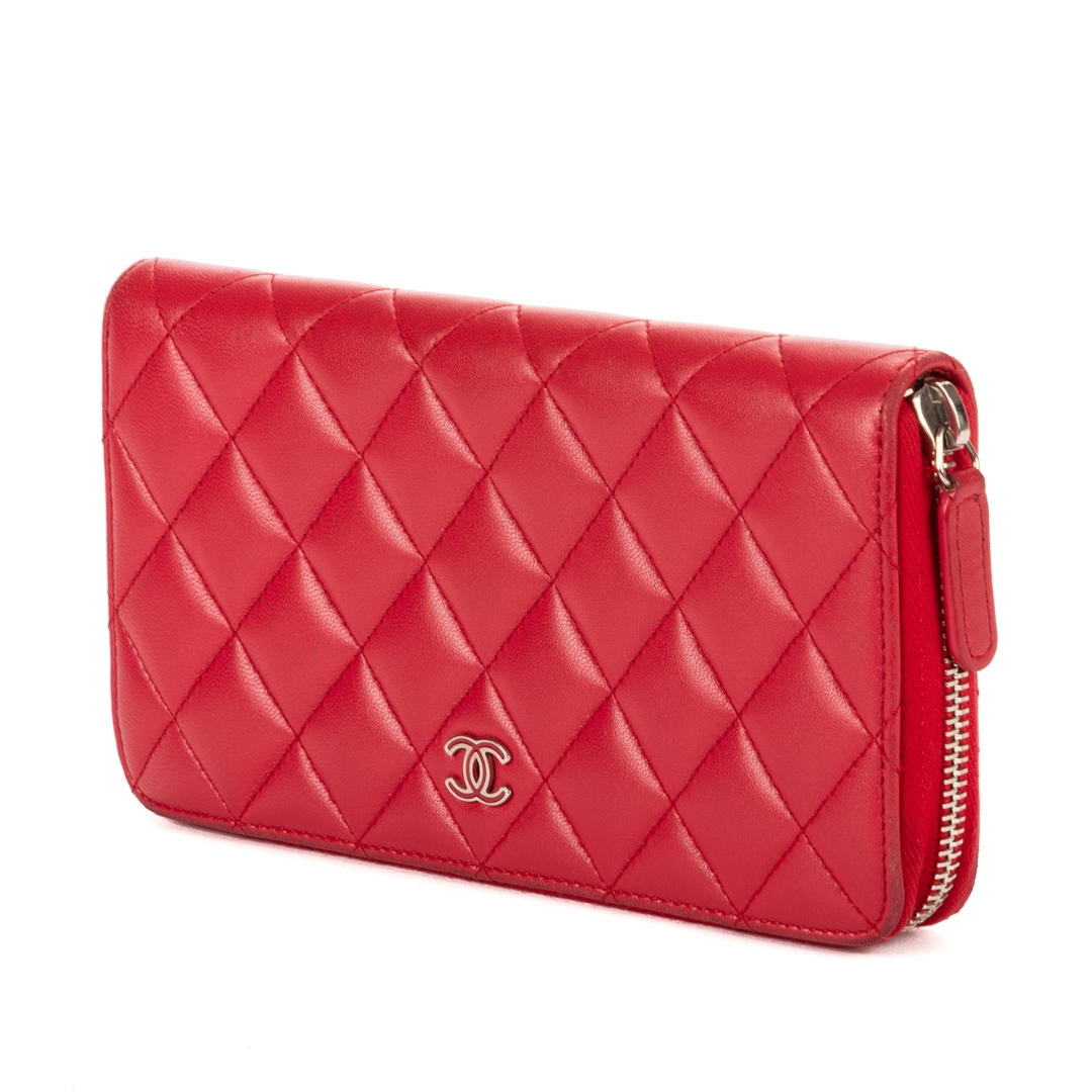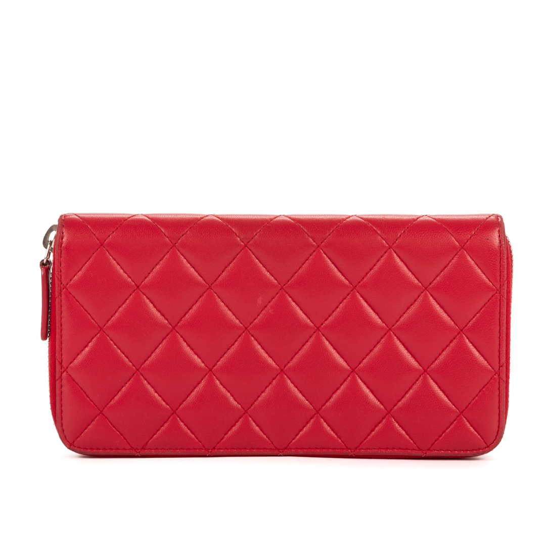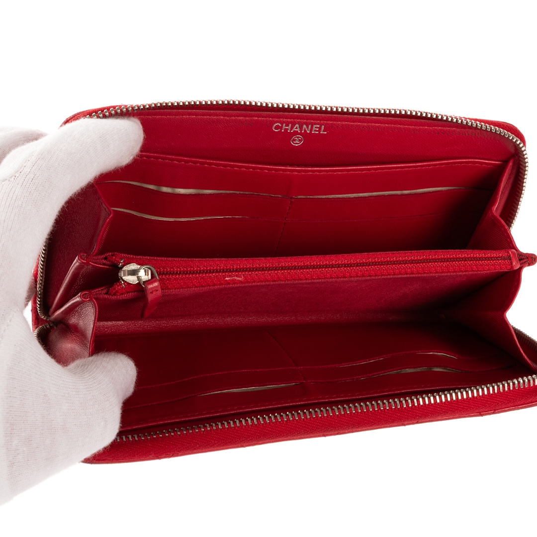 A vintage Chanel fuchsia calf leather Long Wallet with a certificate of authenticity, Approximately 10cm height, 19cm width.