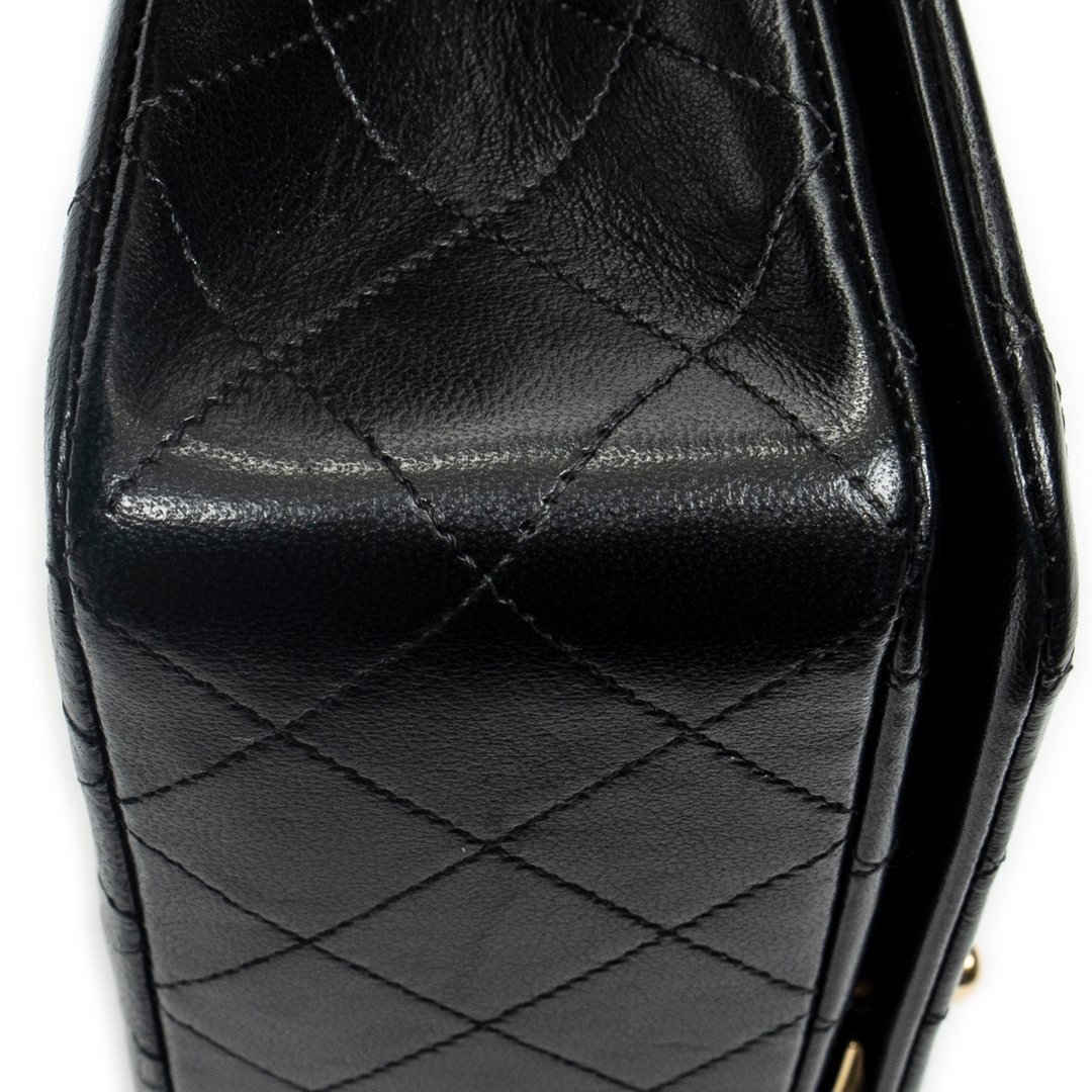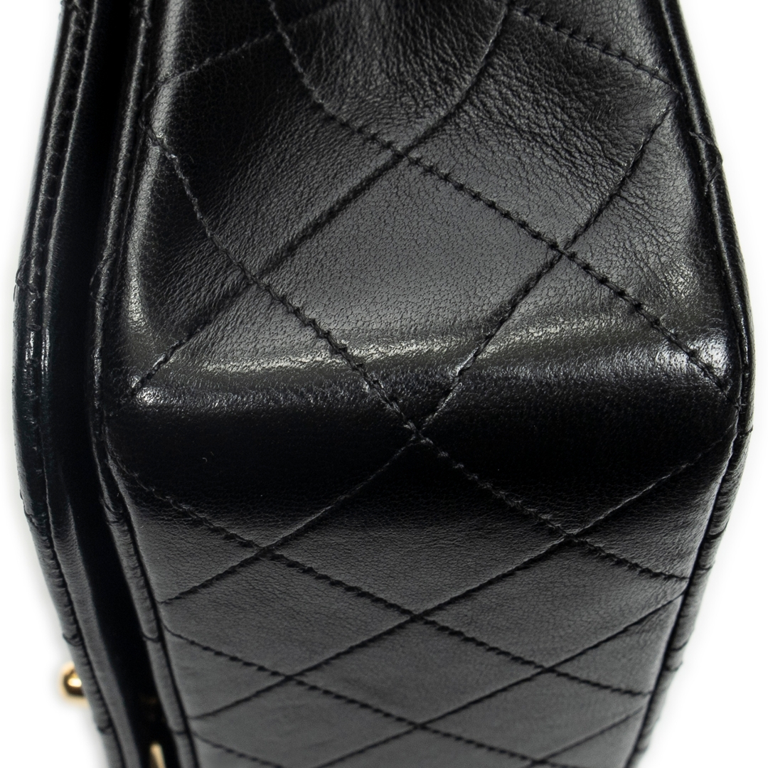 A vintage Chanel black quilted lambskin leather Mademoiselle Full Flap bag with a certificate of authenticity, Approximately 14cm height, 23cm width.