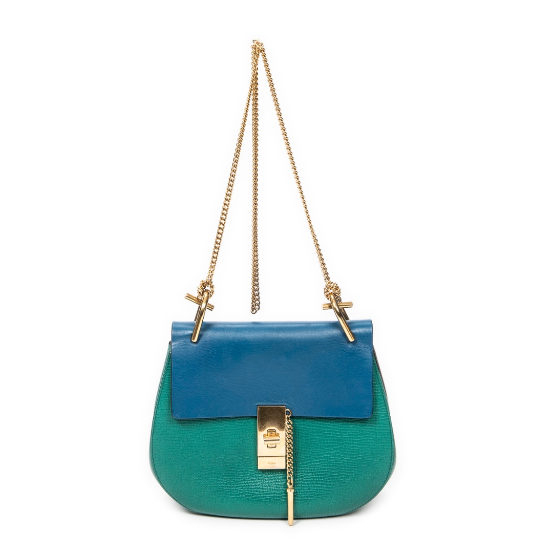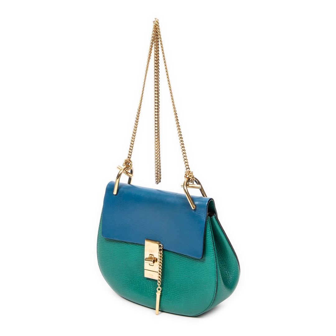 A vintage Chloe blue/green calf leather Small Bicolor Drew bag with a certificate of authenticity, Approximately 20cm height, 23cm width.