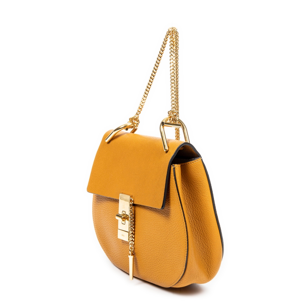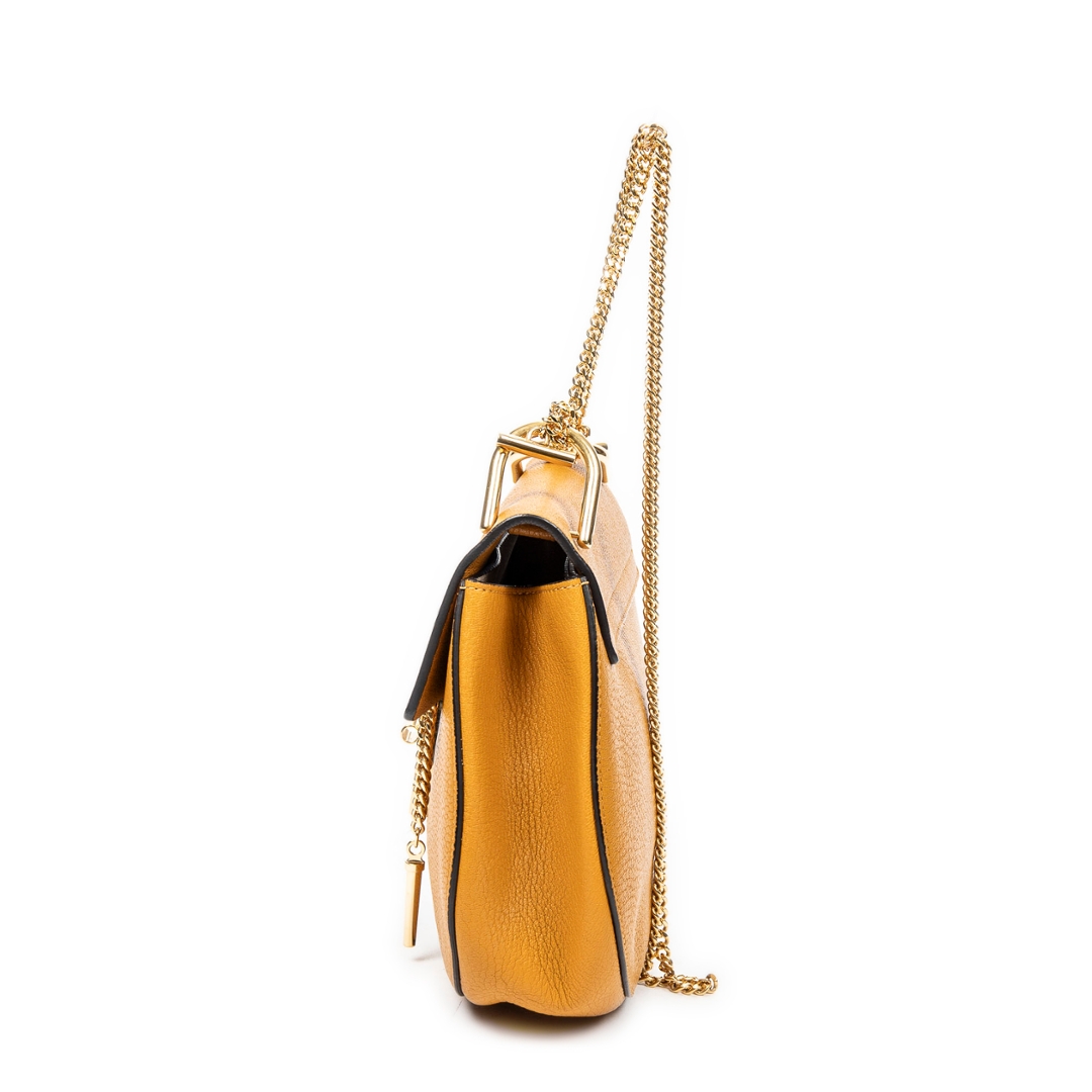 Accompanied by its certificate of authenticity, this Grade A example remains in excellent condition, showing only minimal signs of use. A highly sought-after piece, the Chloé Small Drew in mustard yellow calf leather blends functionality with statement style, making it an ideal addition to any luxury handbag collection.