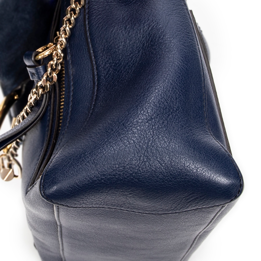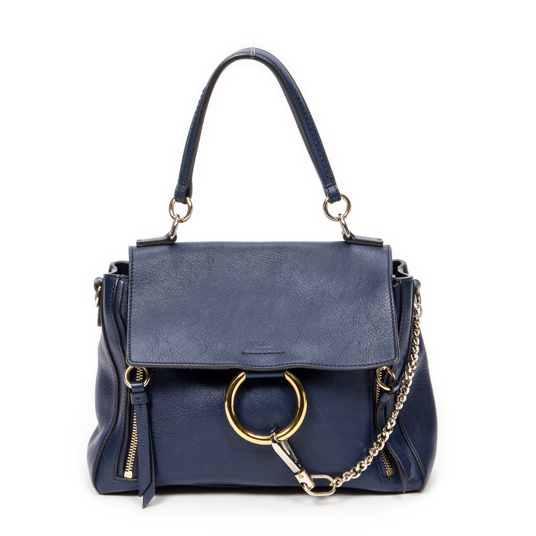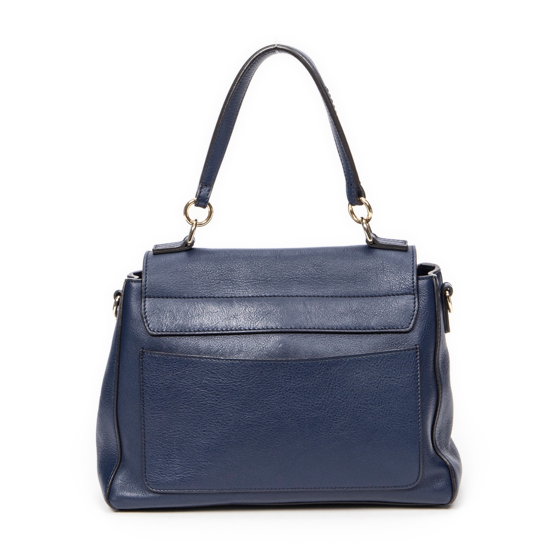 A vintage Chloe navy calf leather Small Faye Day bag with a certificate of authenticity, Approximately 18cm height, 26cm width.
