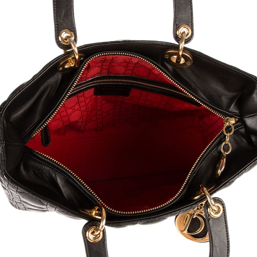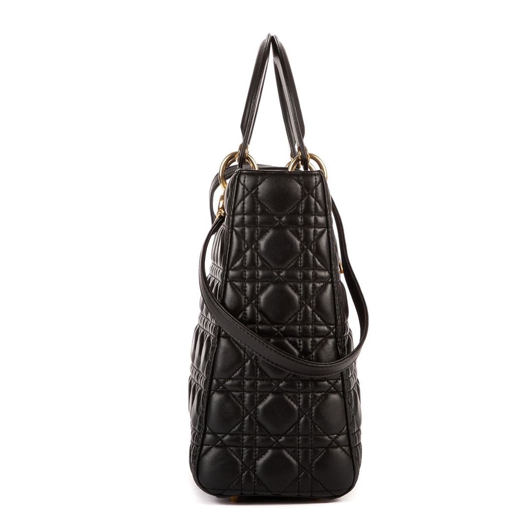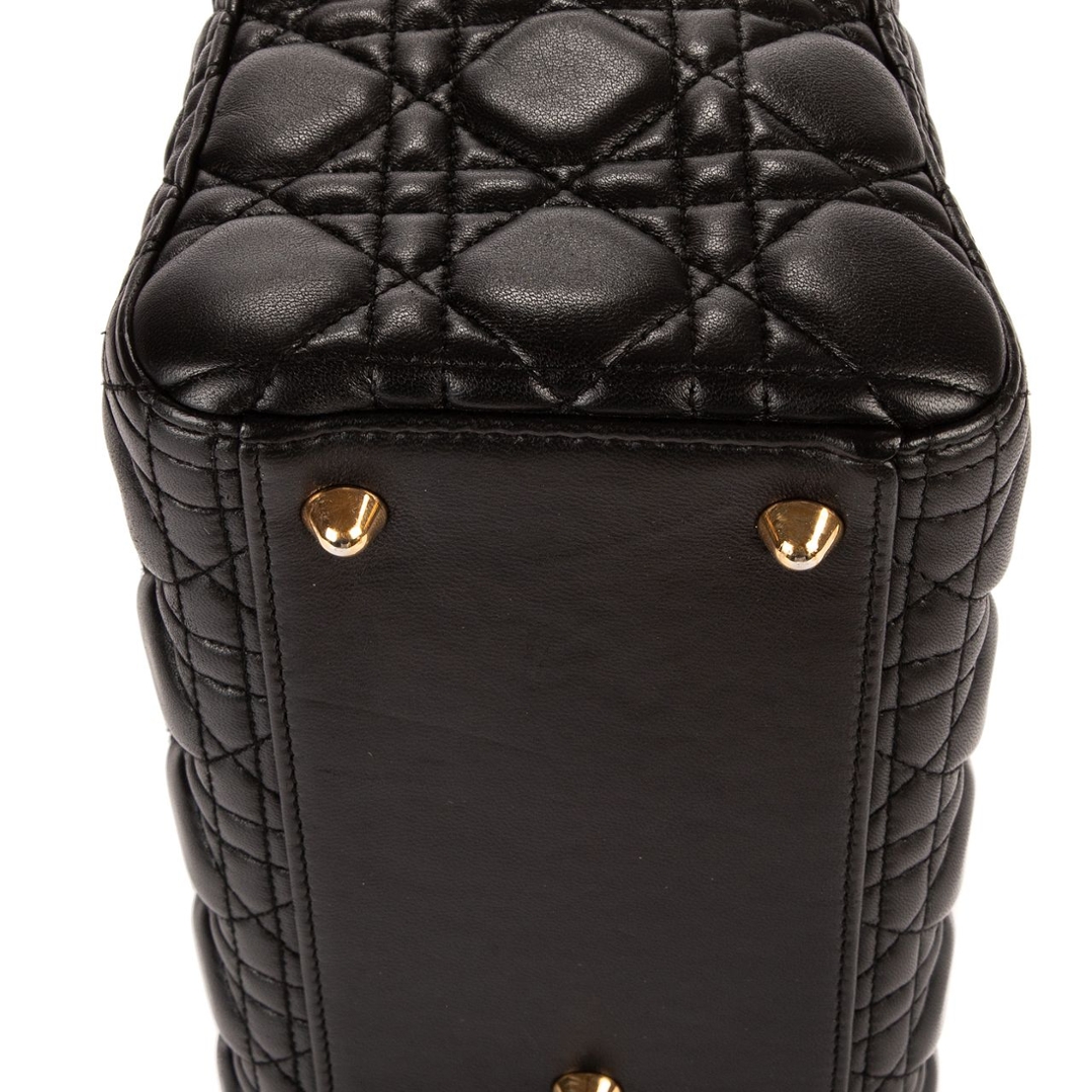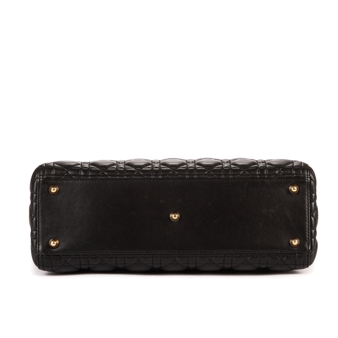 A vintage black calf leather Christian Dior Lady Dior bag with a certificate of authenticity, Approximately 25cm height, 32cm width.