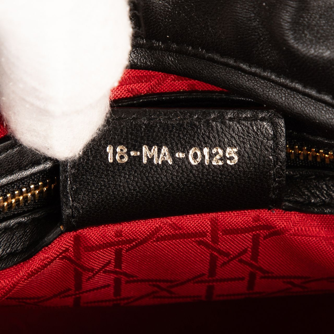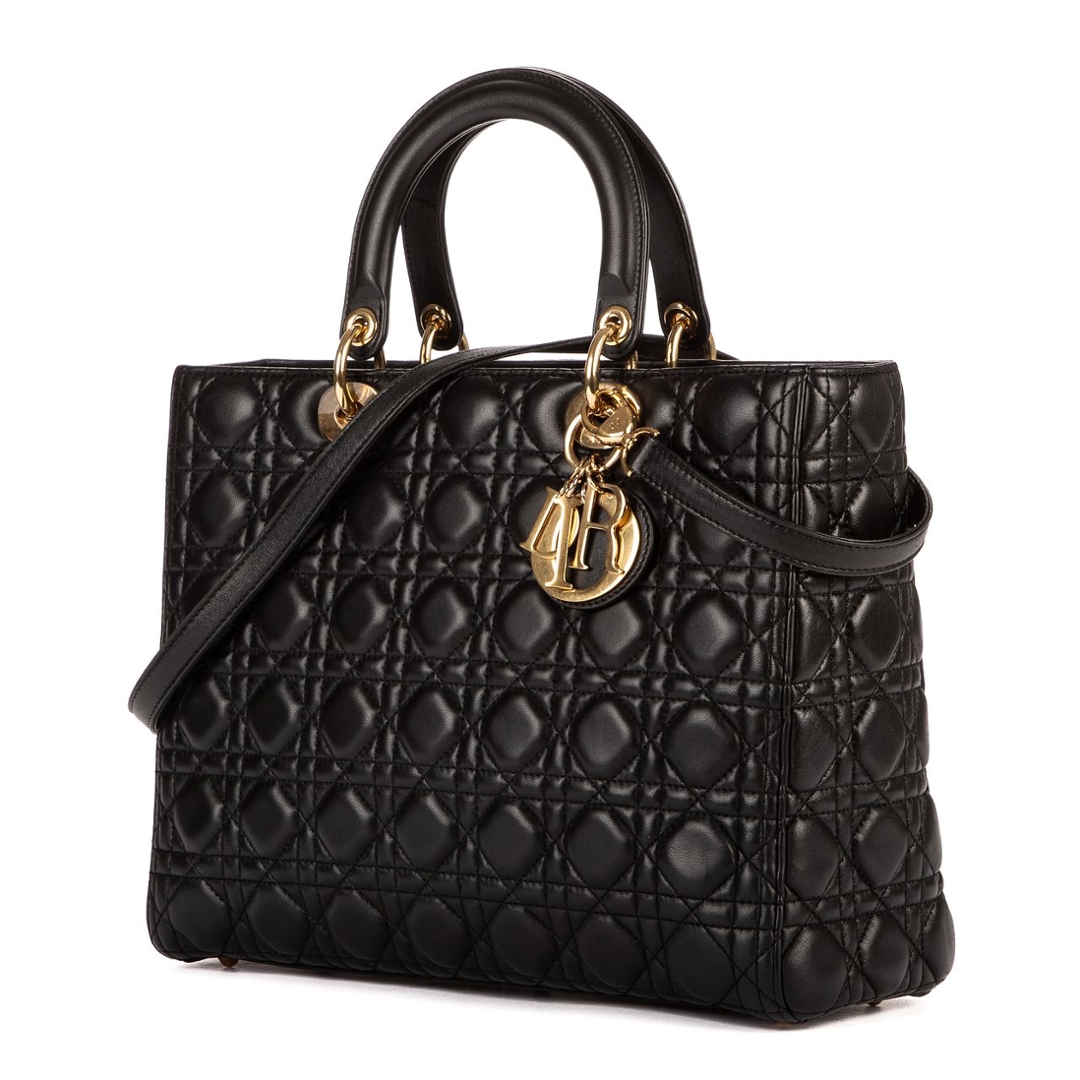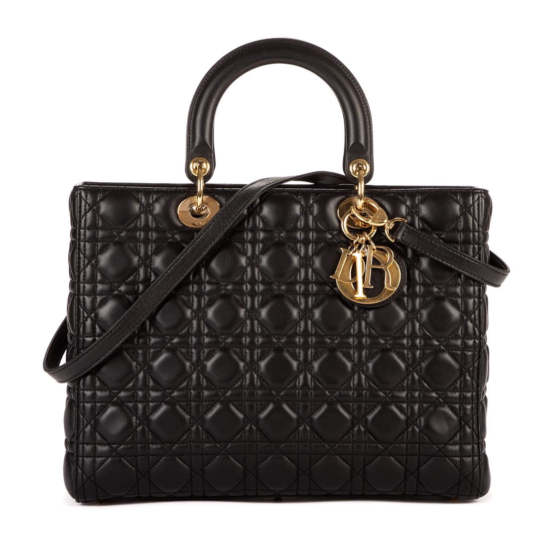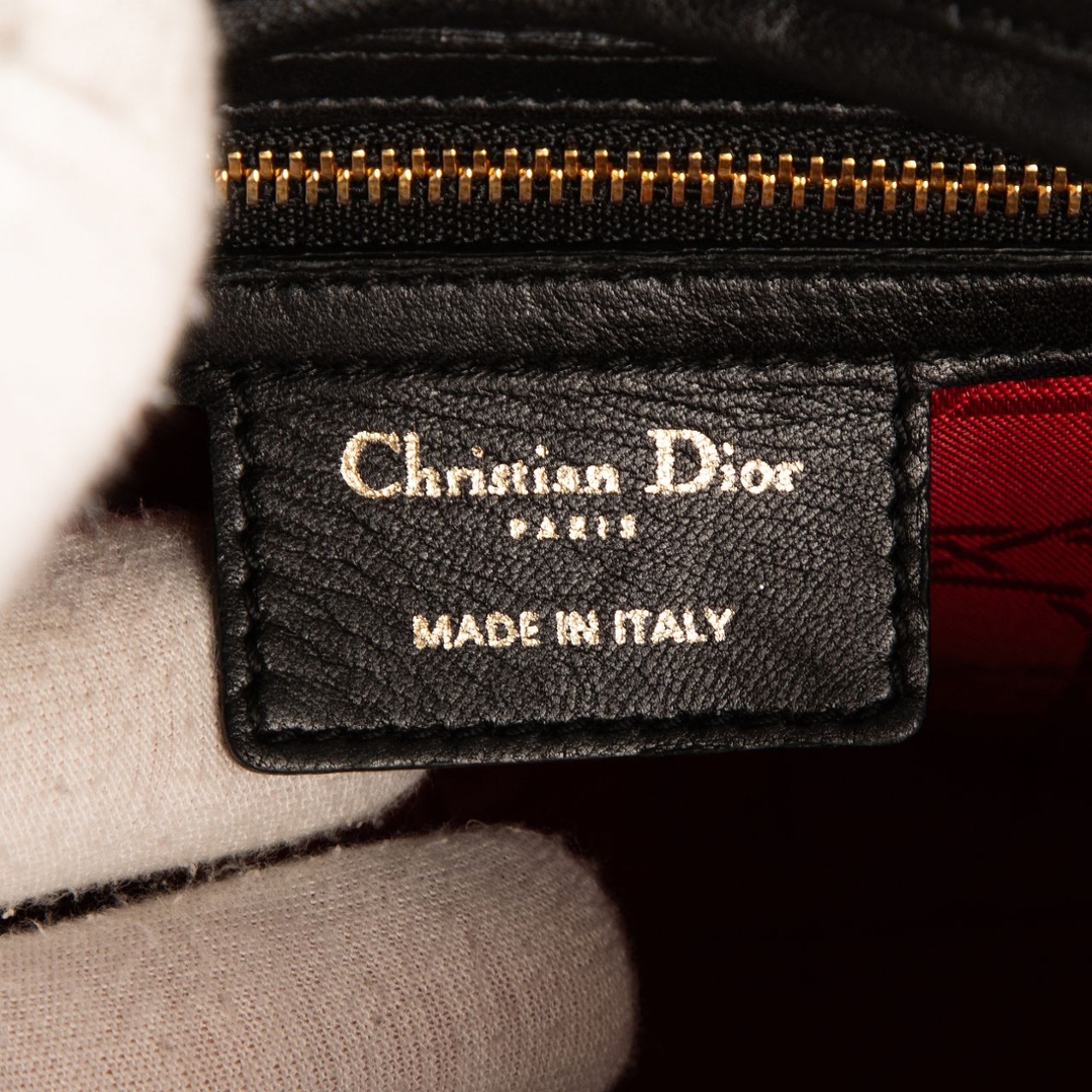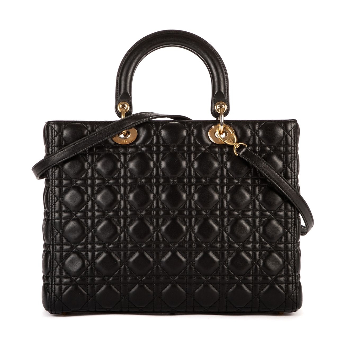 A vintage black calf leather Christian Dior Lady Dior bag with a certificate of authenticity, Approximately 25cm height, 32cm width.
