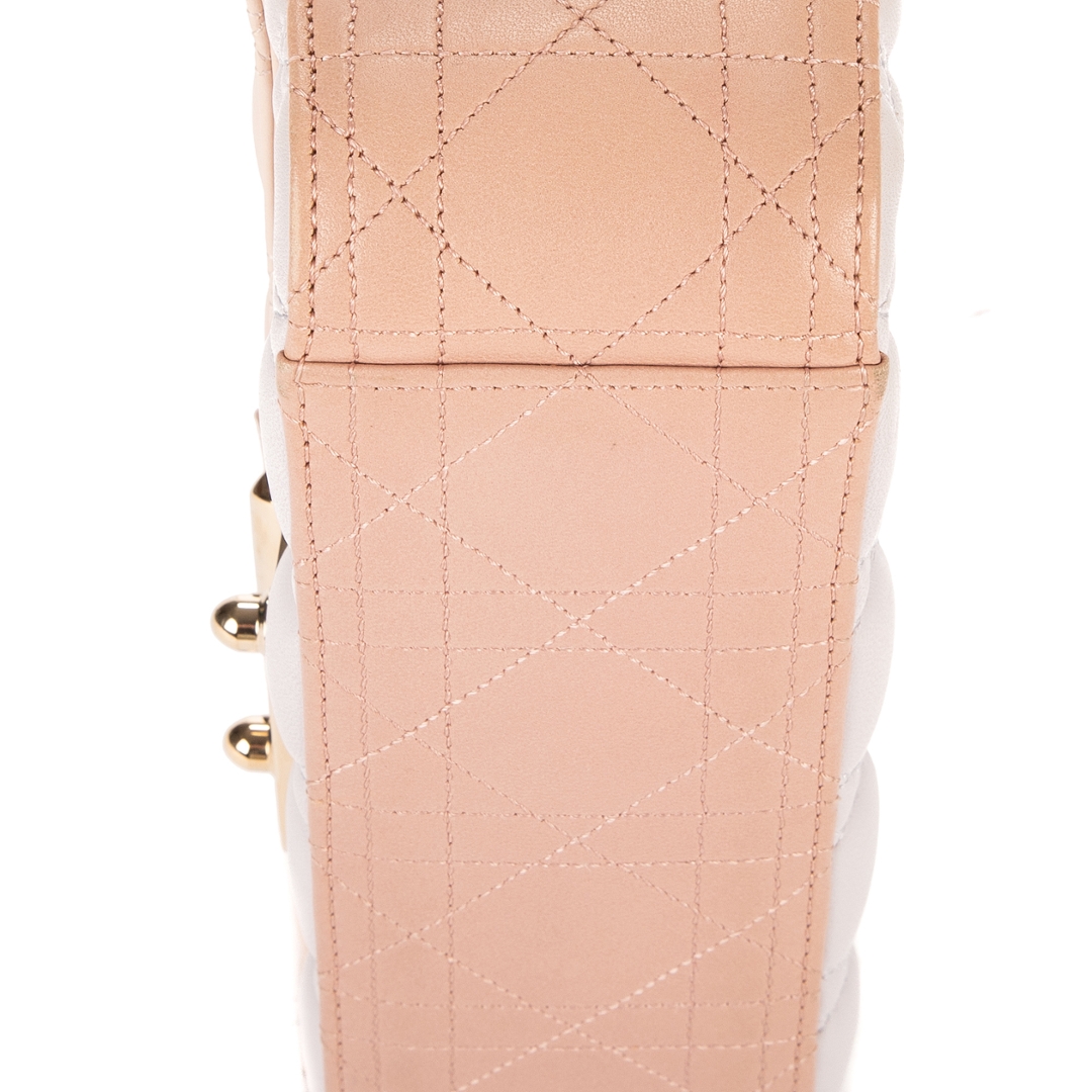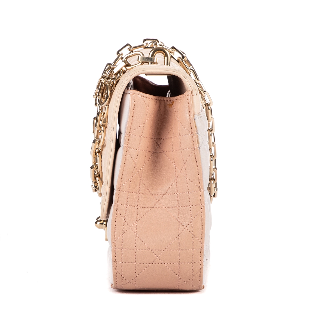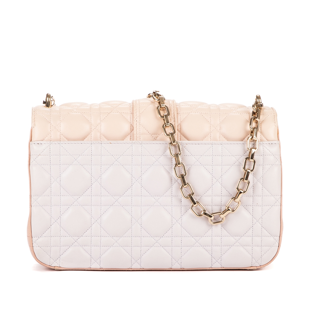A vintage Christian Dior Miss Dior Wallet On Chain Medium White and Beige Cannage Leather bag with a certificate of authenticity, Approximately 18cm height, 26cm width.