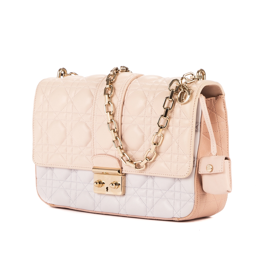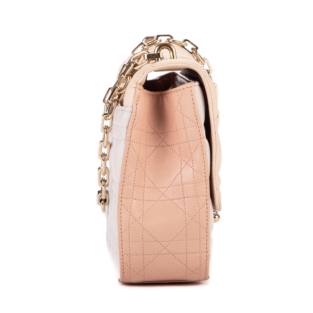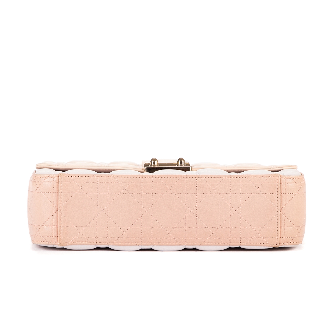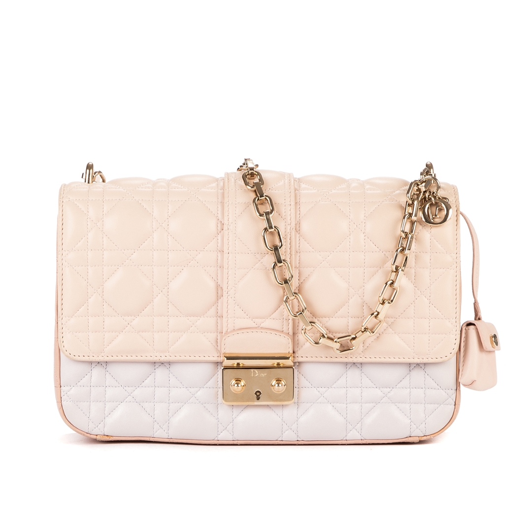 A vintage Christian Dior Miss Dior Wallet On Chain Medium White and Beige Cannage Leather bag with a certificate of authenticity, Approximately 18cm height, 26cm width.