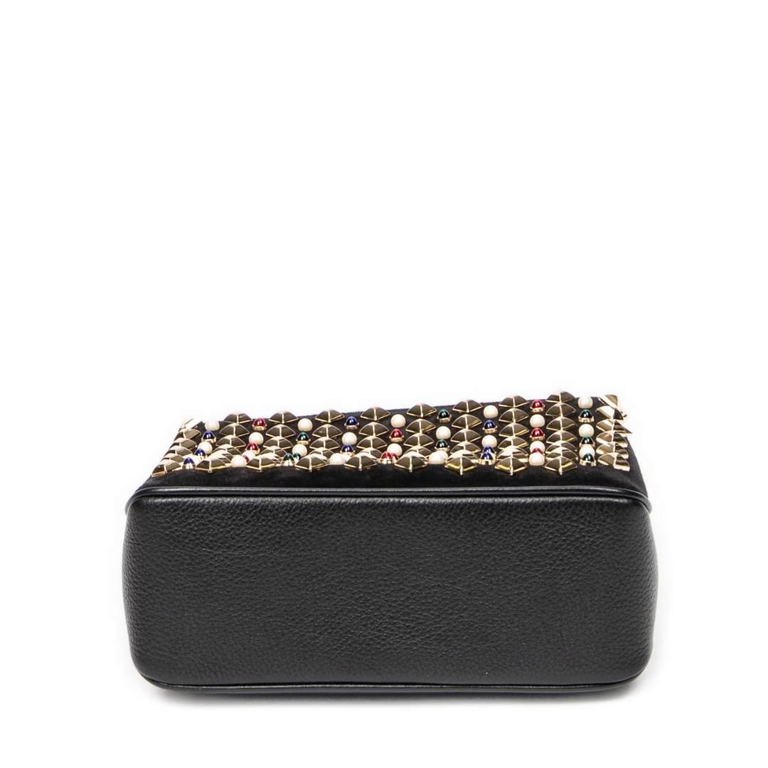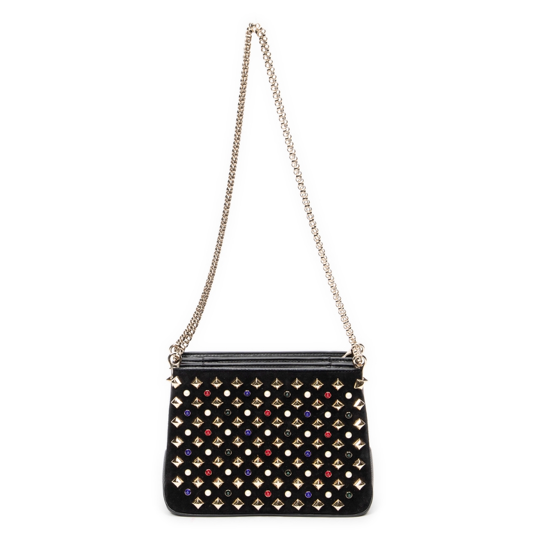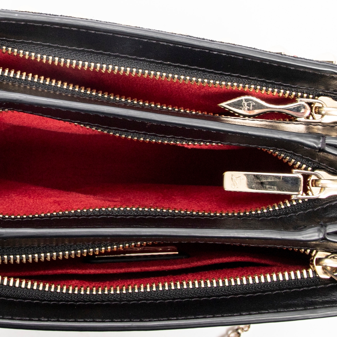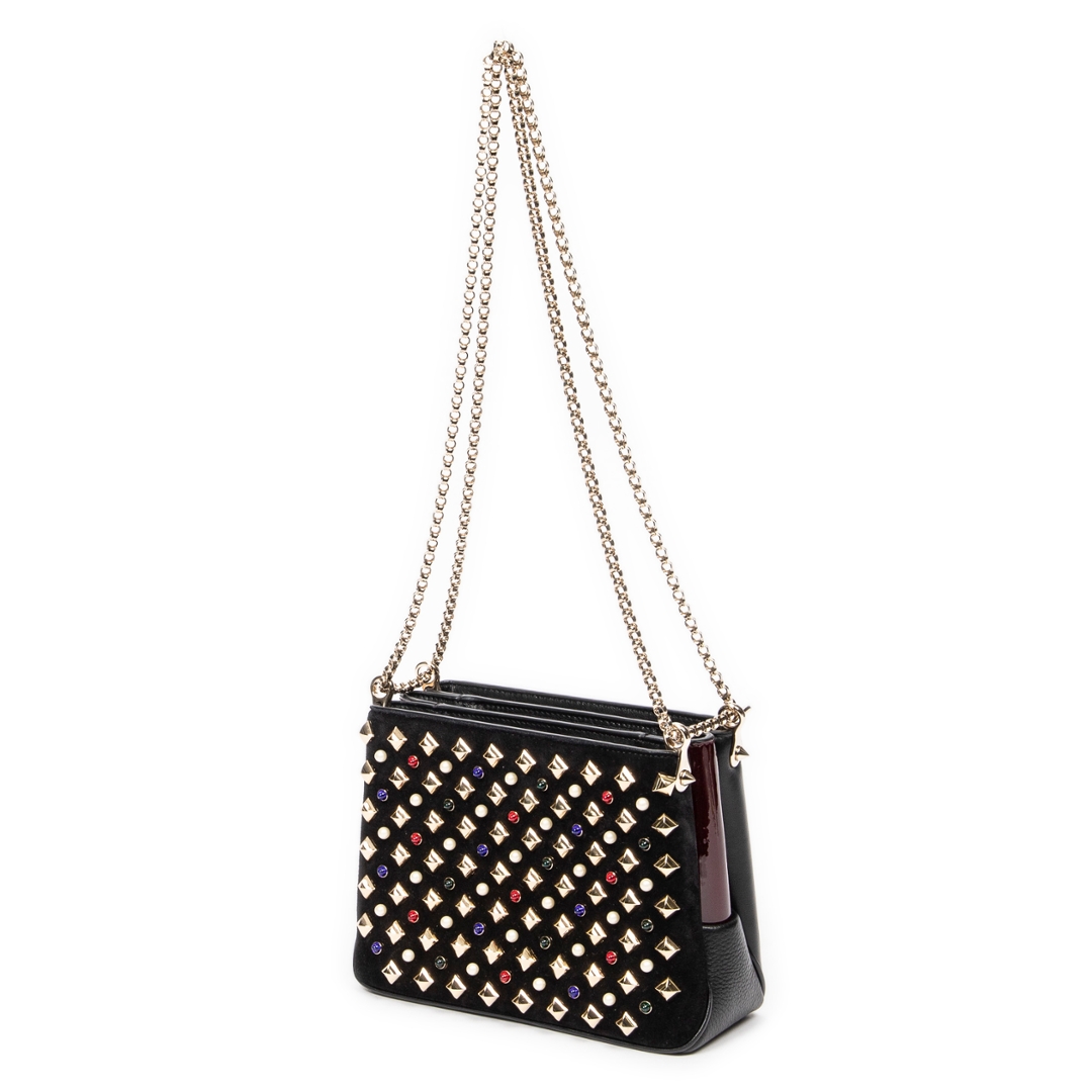 A vintage Christian Louboutin black calf leather Small Pearl Studded Triloubi Chain bag with a certificate of authenticity, Approximately 15cm height, 20cm width.