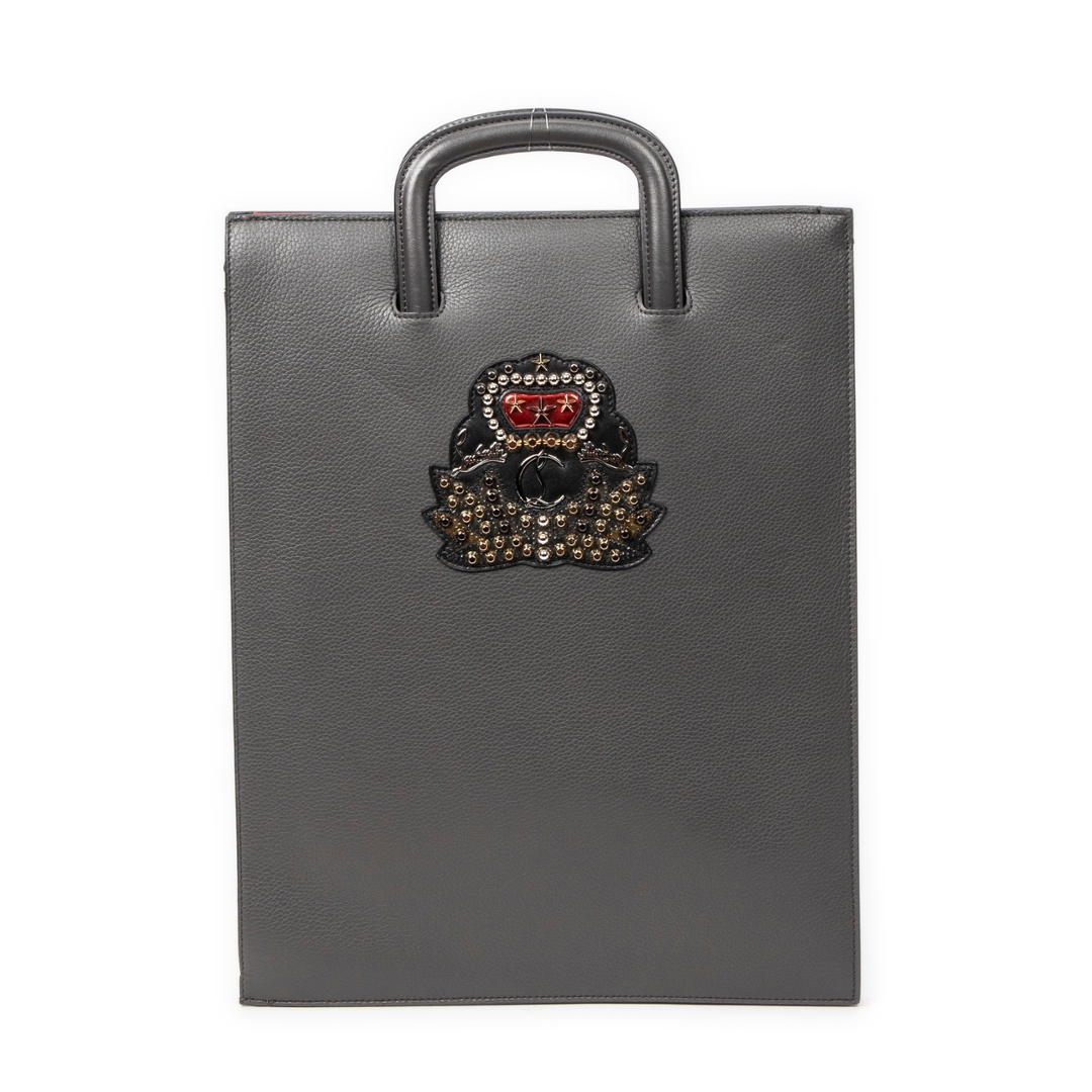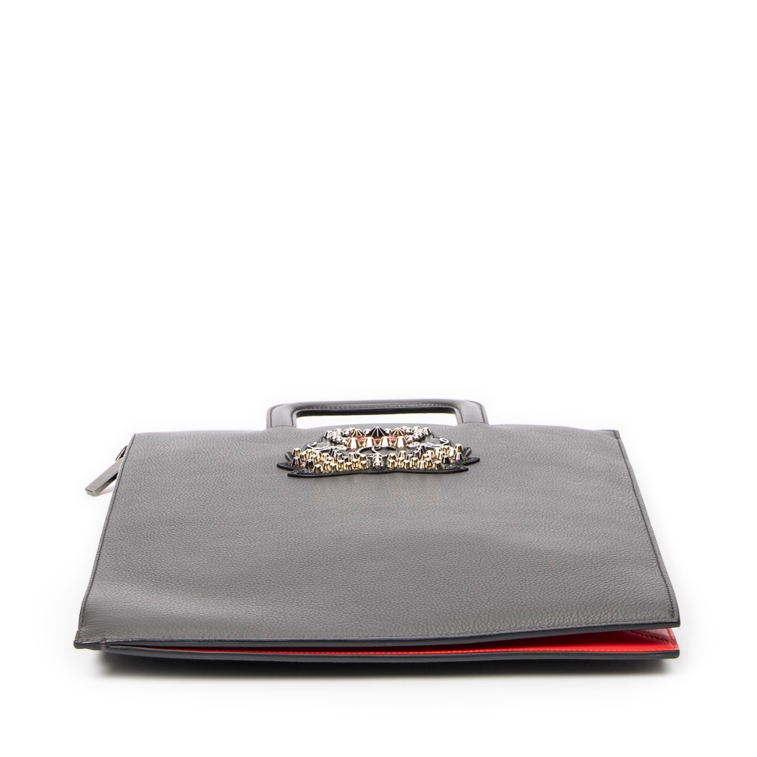 A vintage Christian Louboutin grey calf leather Trick Track Portfolio Bag with a certificate of authenticity, Approximately 40cm height, 31cm width.