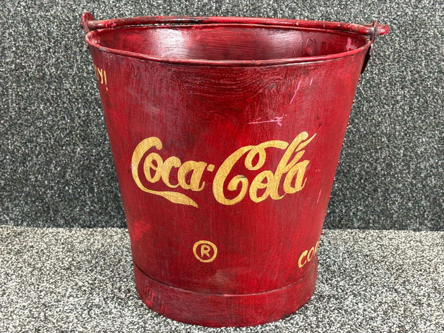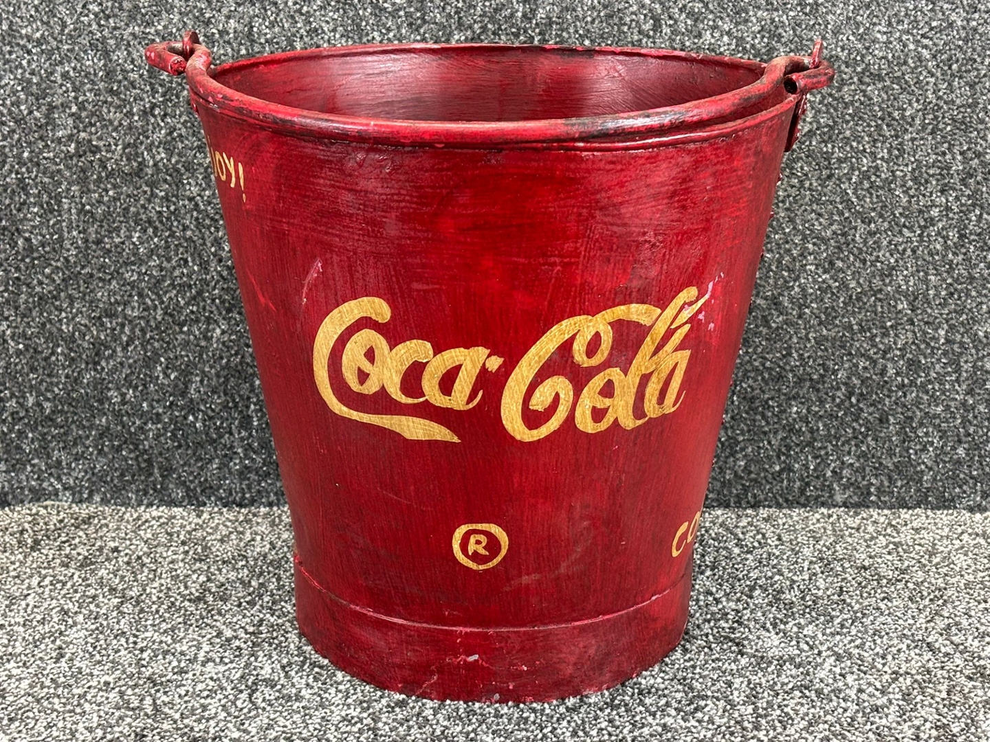 A classic Coca-Cola design, hand-painted red bucket. Approx 30cm height, 34cm width.
