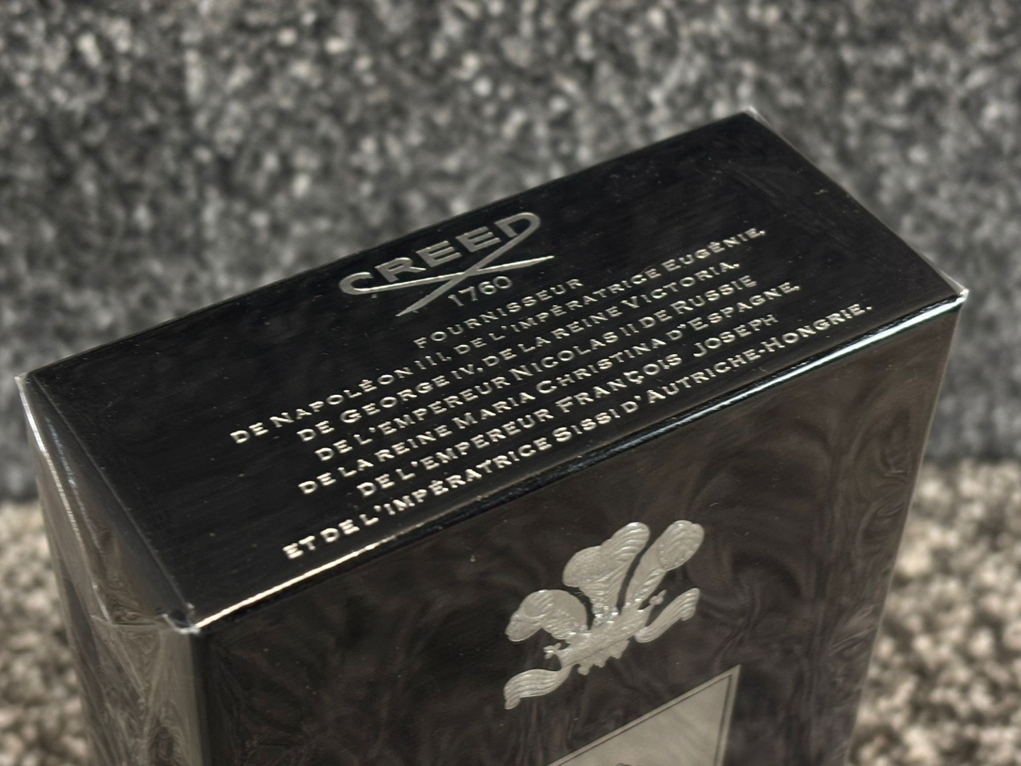 A bottle of Creed - Aventus Eau De Parfum in a presentation box.