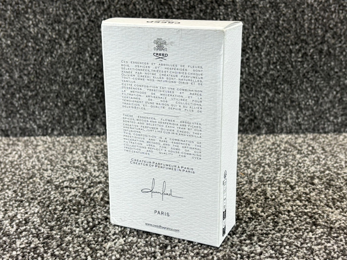 A bottle of Creed -  Tabarome Millesime Eau De Parfum in a presentation box.