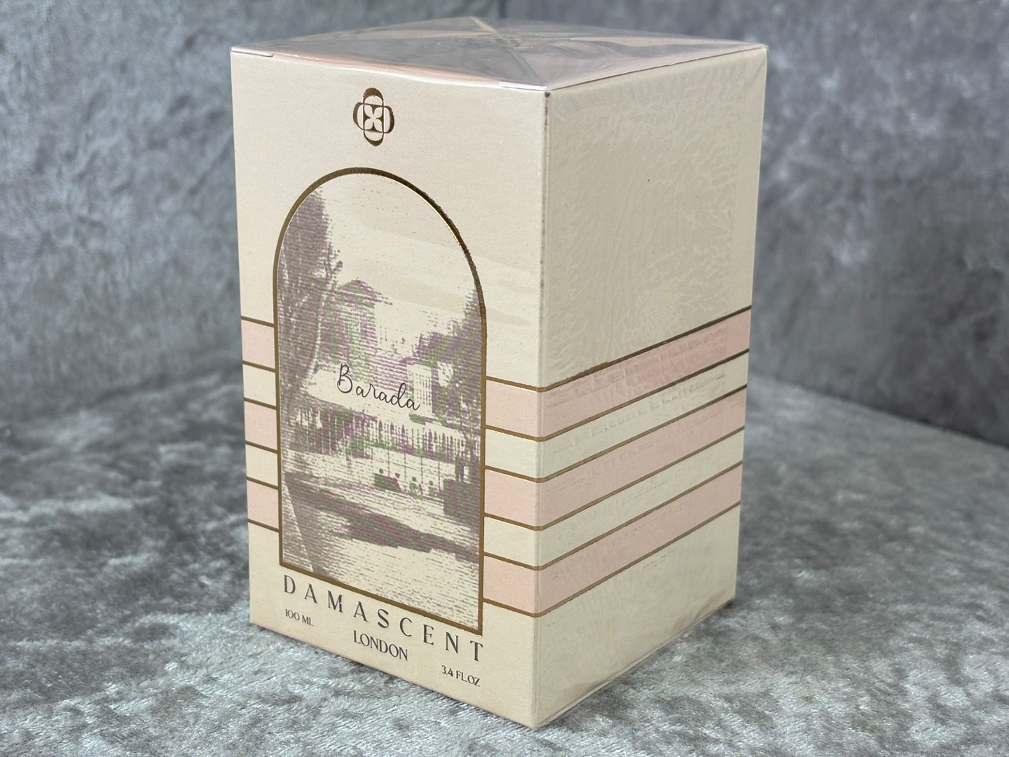 A bottle of Damascent – Barada Parfum, presented in its original presentation box, offering a refined and atmospheric fragrance inspired by heritage, depth, and quiet strength. Created by Damascent, this high-concentration parfum reflects a thoughtful and expressive approach to modern perfumery. Presented in a 100ml bottle, it is a distinctive choice for those who value character and restraint over overt intensity.