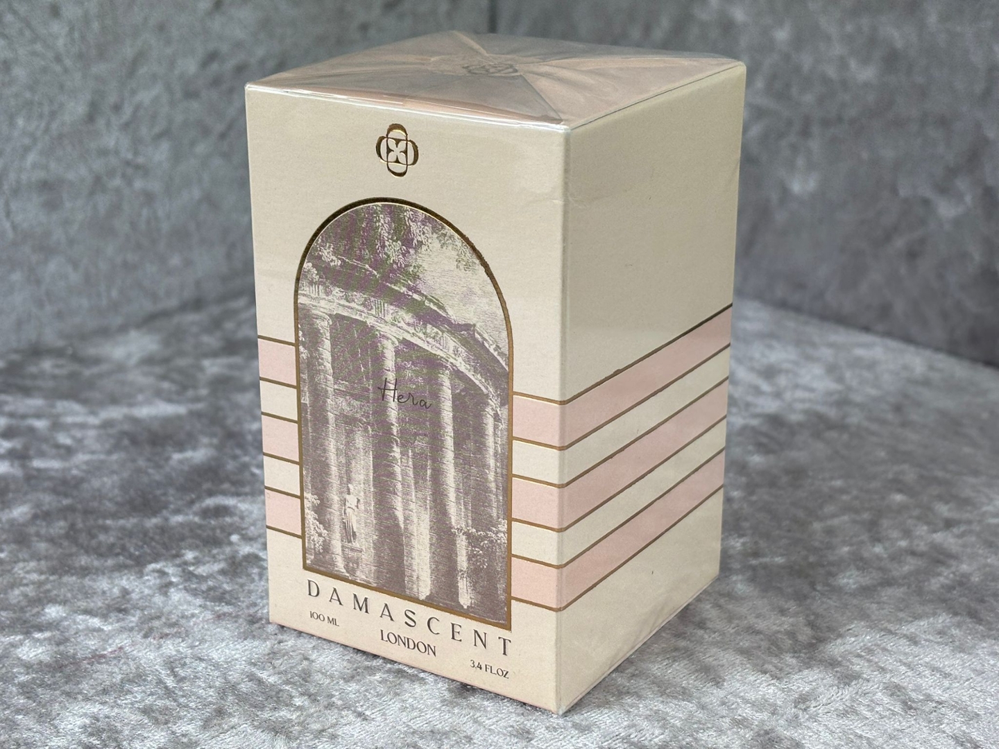 A bottle of Damascent - Hera Parfum in a presentation box.