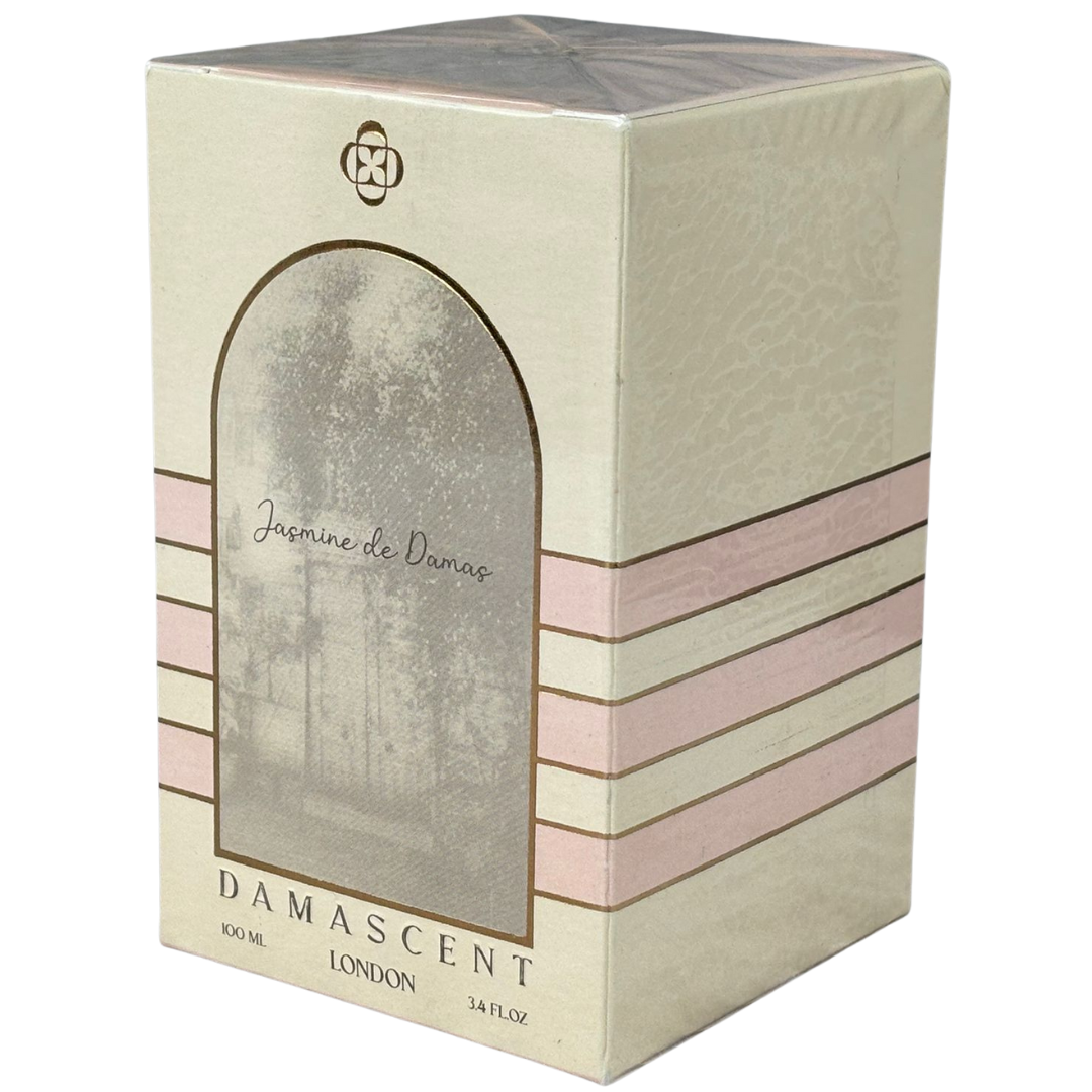 A bottle of Damascent - Jasmine De Damas Parfum in a presentation box.