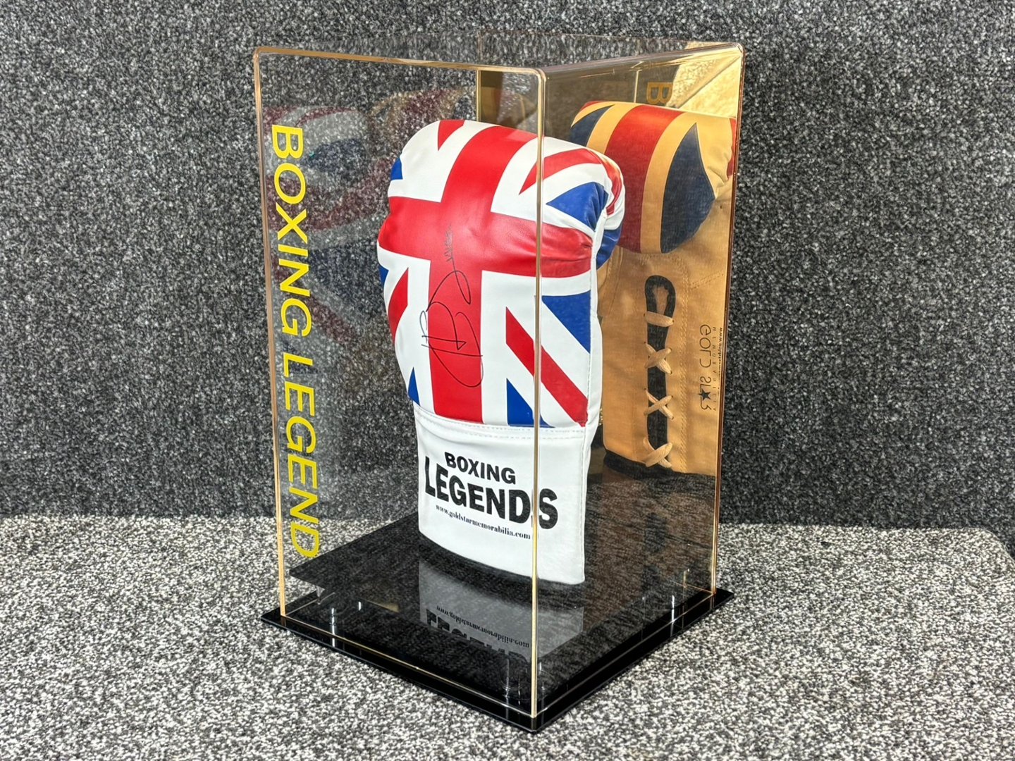 Presented in a smart display case, this item measures approximately 13 inches in height and 8 inches in width, making it ideal for display in a home, office, or collection setting. A superb opportunity to acquire a standout piece connected to one of Britain’s most recognisable heavyweight fighters.